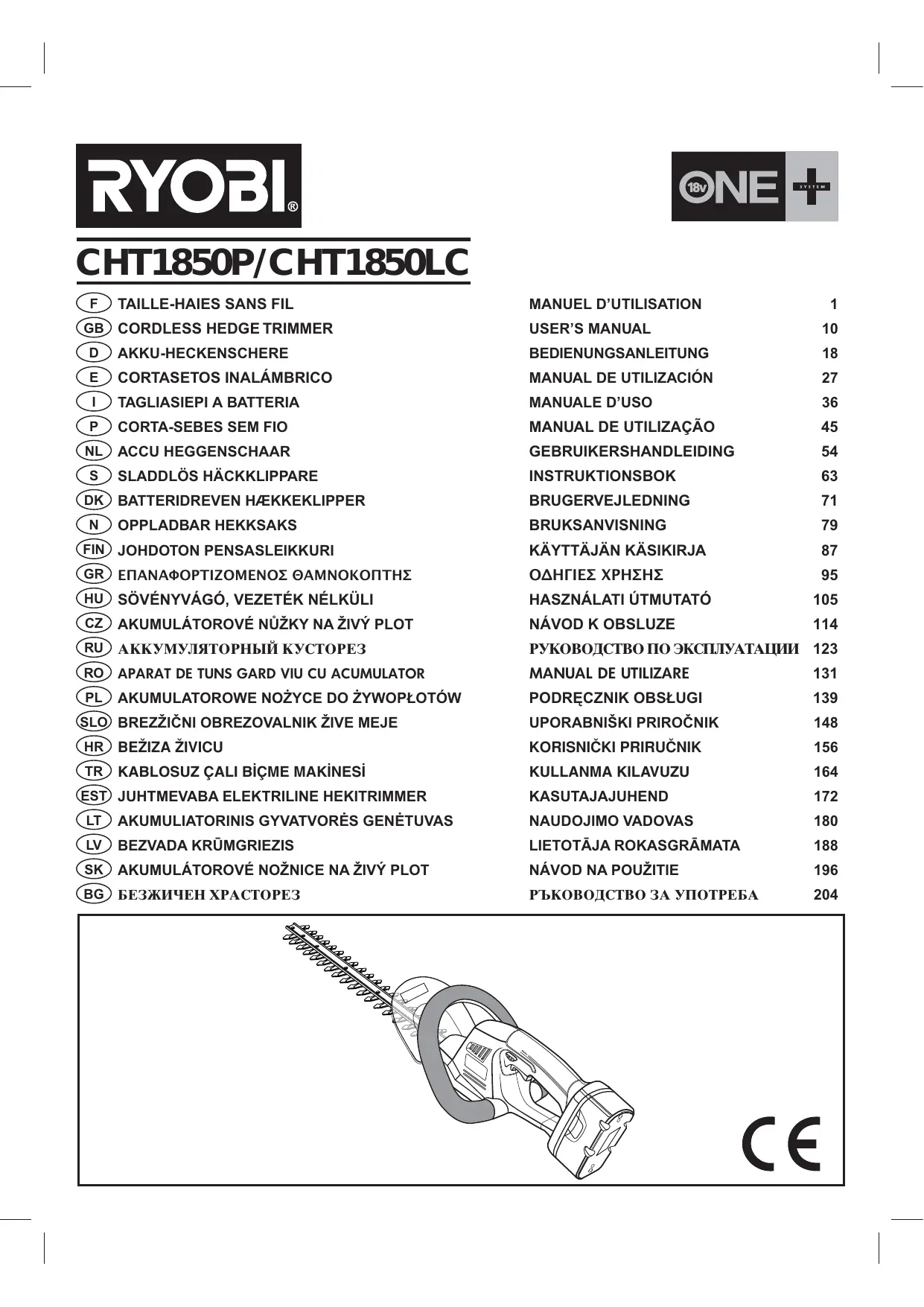 Retrouvez gratuitement la notice de l'appareil CHT1850LC RYOBI au format PDF.