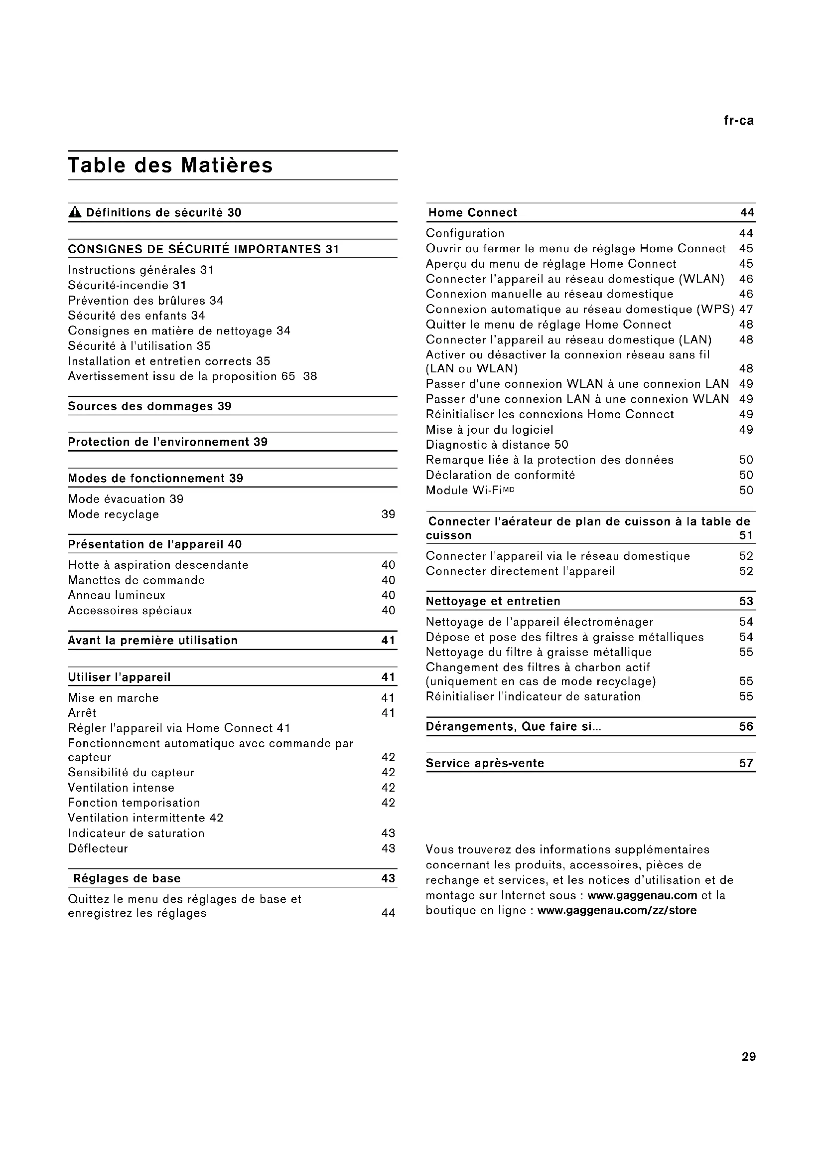 Vous trouvez des informations supplémentaires concernant les produits, accessoires, pièces de rechange et services, et les notices d'utilisation et de montage sur Internet sous : www.gaggenau.com et la boutique en ligne : www.gaggenau.com/zz/store