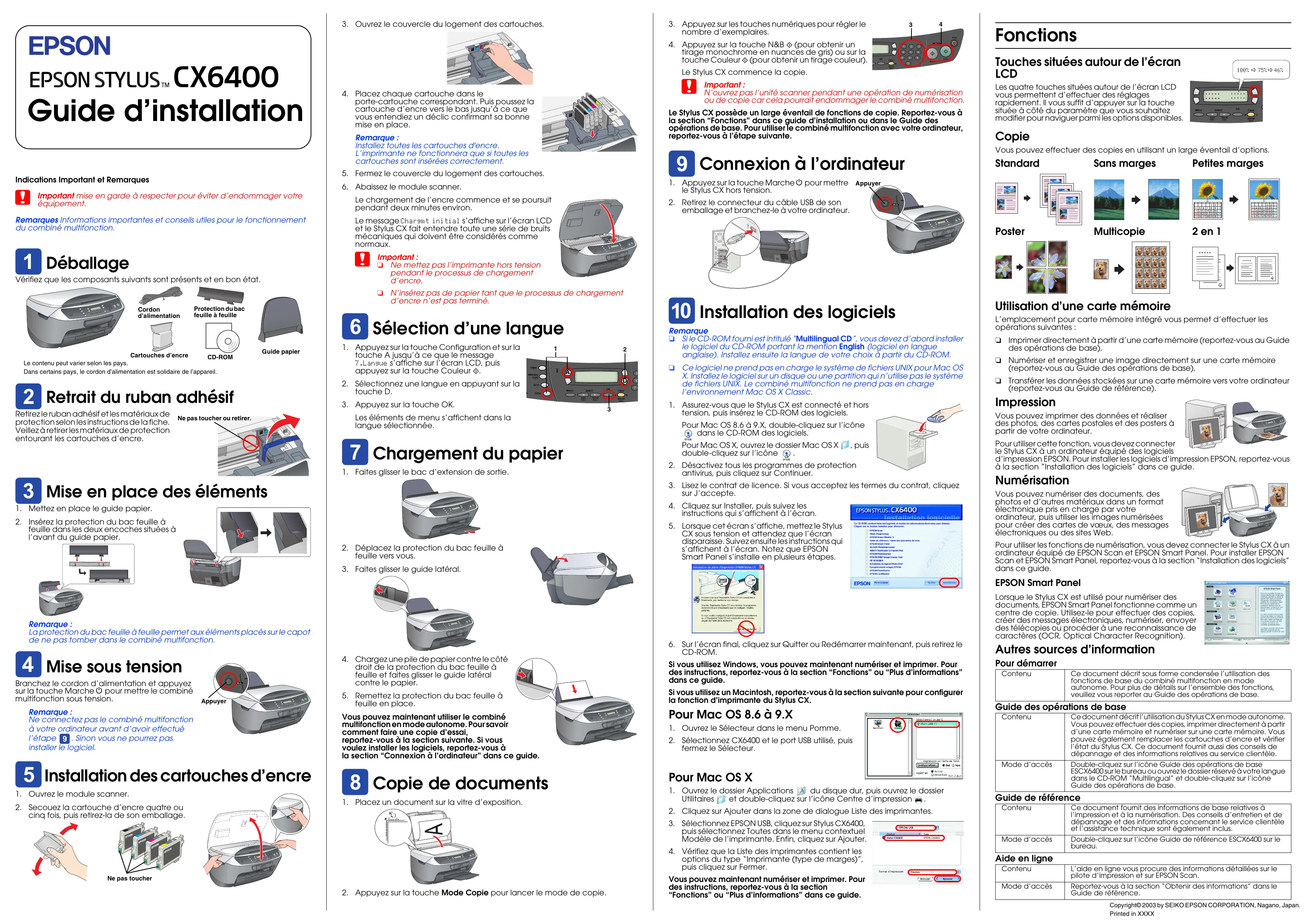 Retrouvez gratuitement la notice de l'appareil STYLUS CX6400 EPSON au format PDF.