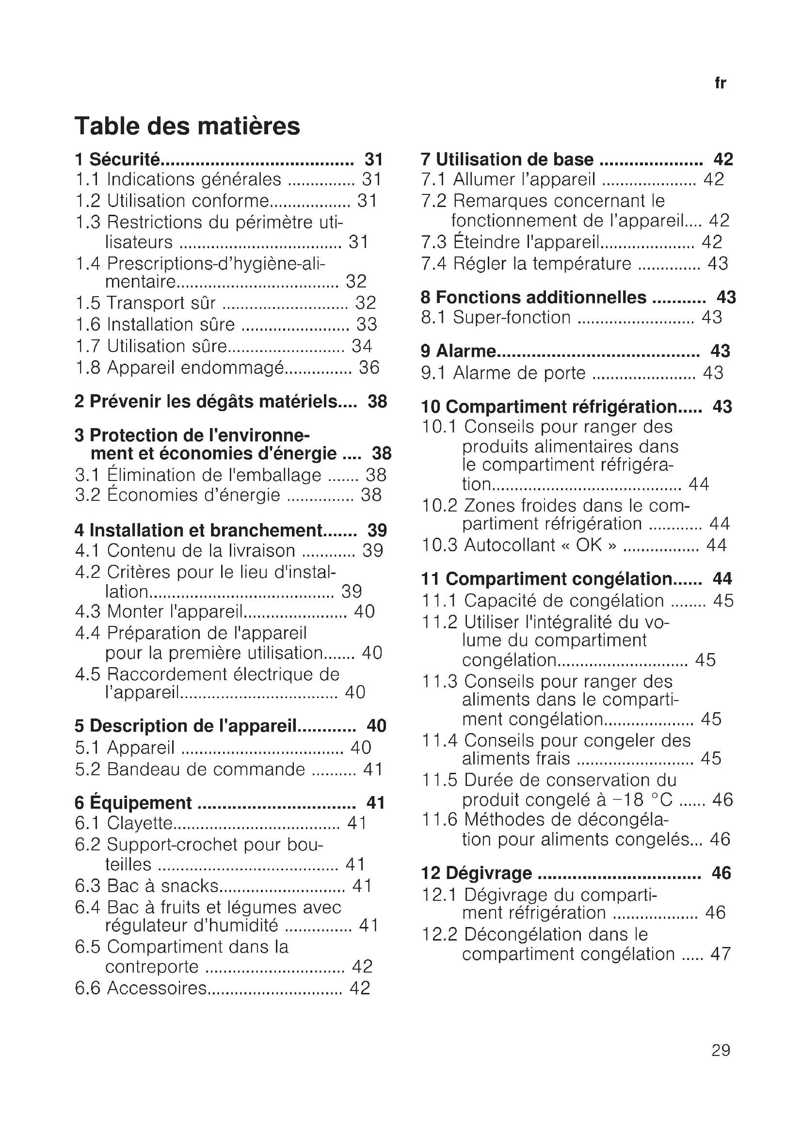 tion pour aliments congelés...46 12 Dégivrage .................................46