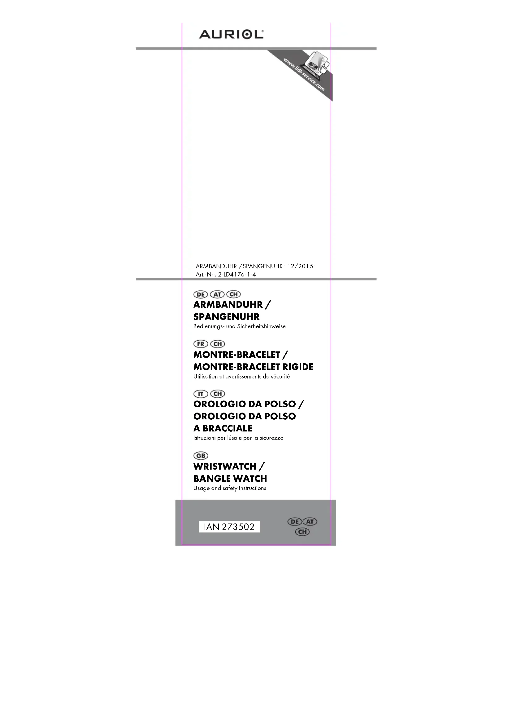 IAN 273502 - Montre AURIOL - Notice d'utilisation et mode d'emploi gratuit