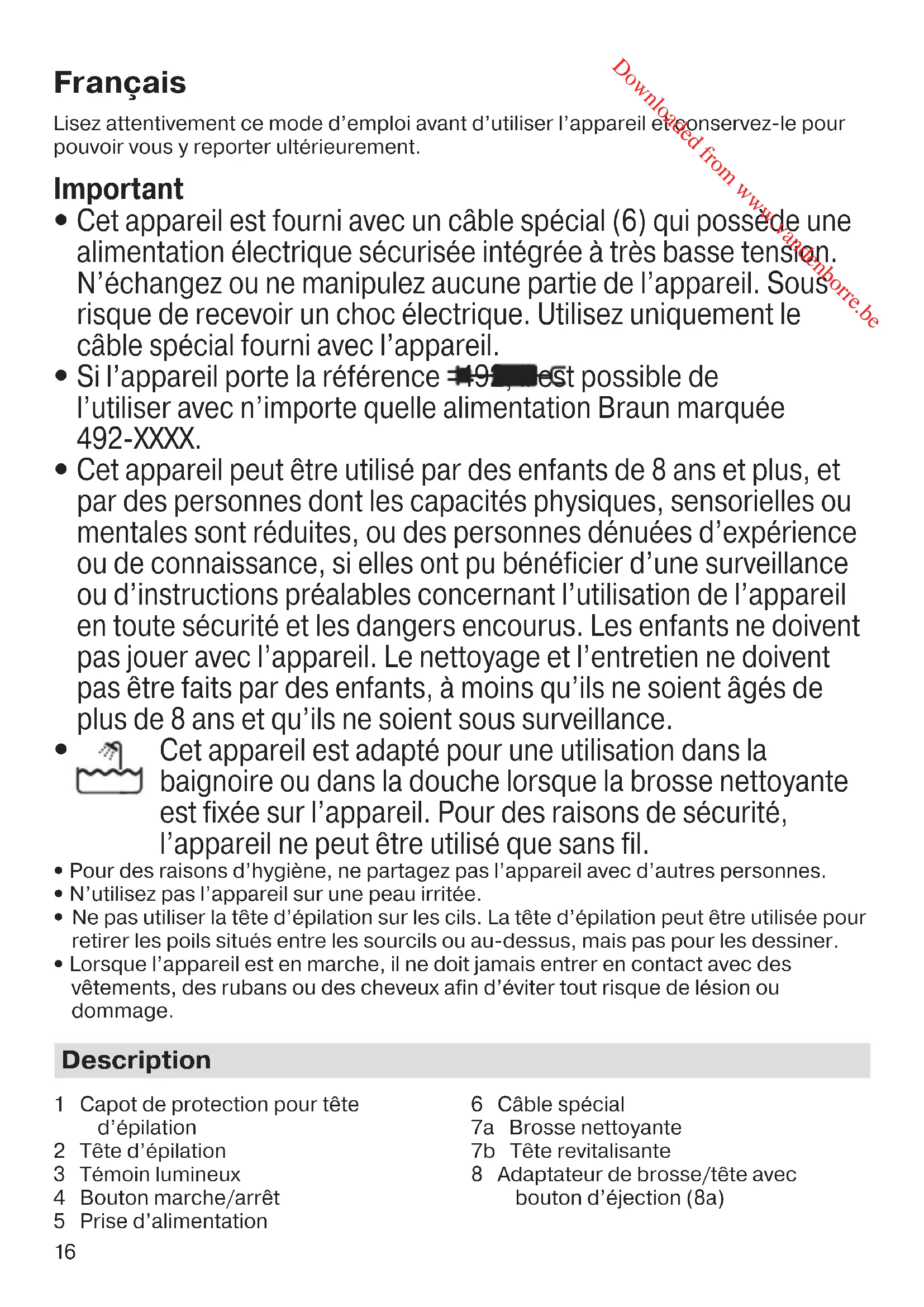 Si l’appareil porte la référence 492, il est possible de l’utiliser avec n’importe quelle alimentation Braun marquée 492-XXXX.