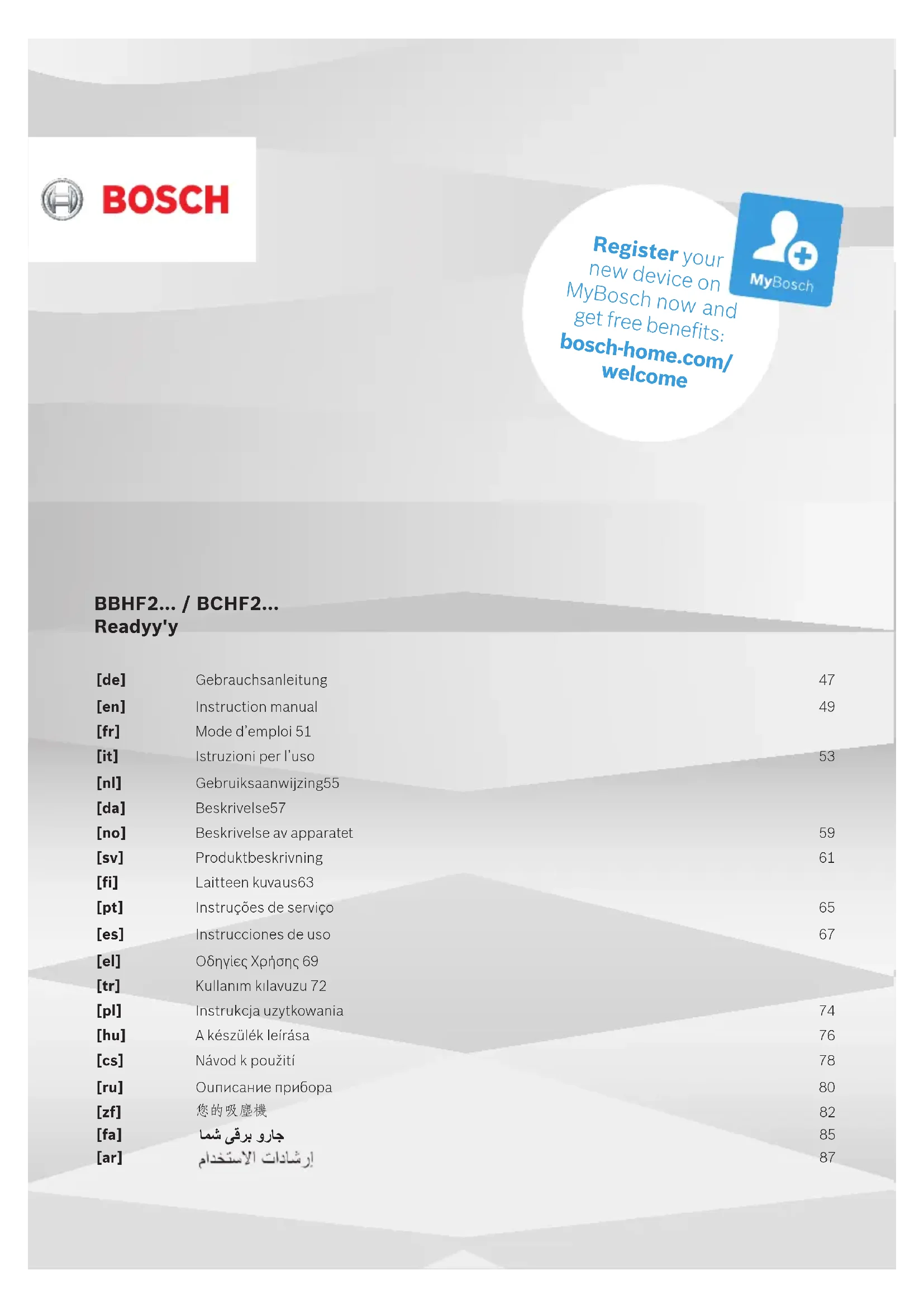 Retrouvez gratuitement la notice de l'appareil BCHF2BST BOSCH au format PDF.