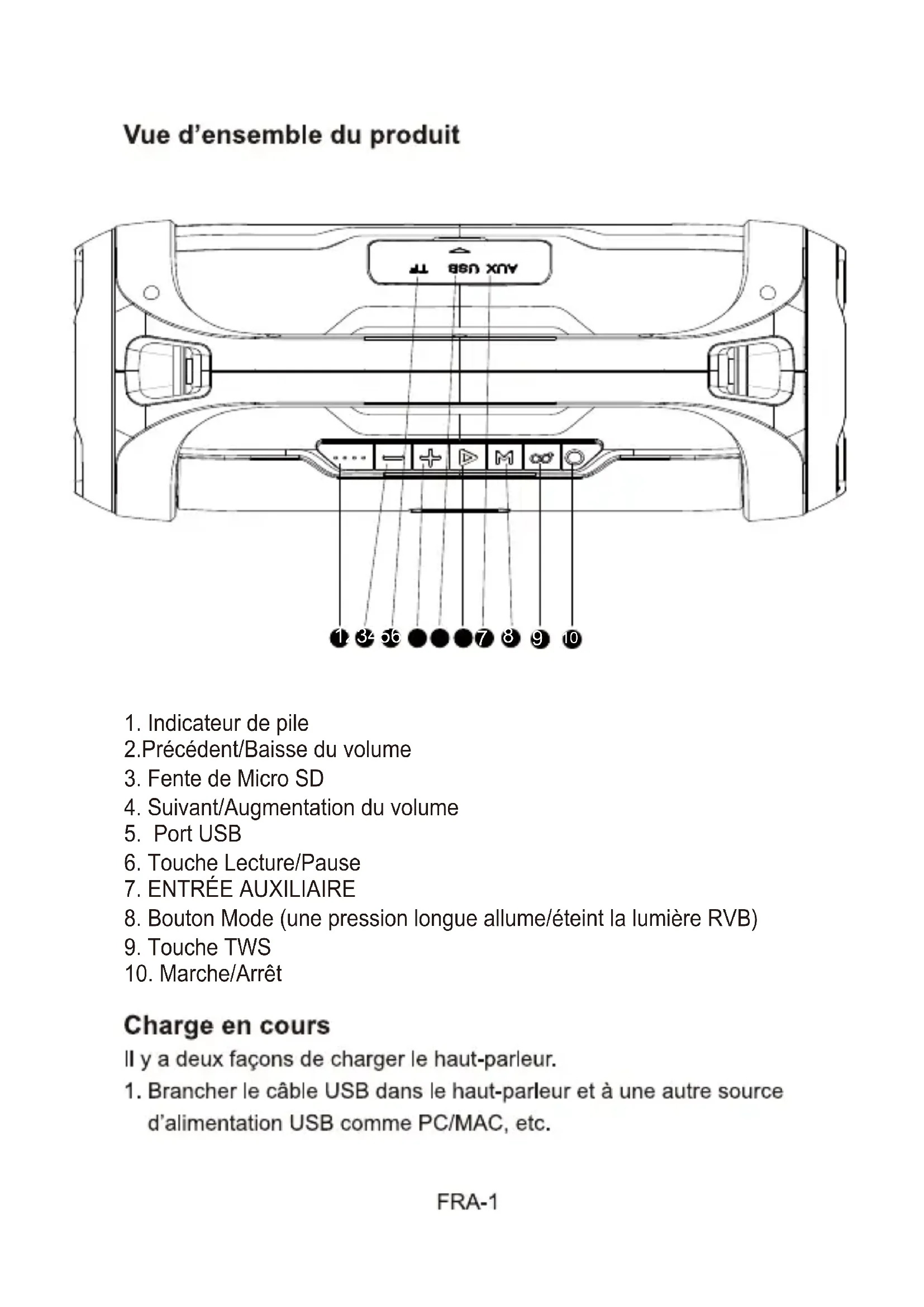 | Utilisation | Lecture de musique sans fil, recharge d'appareils |