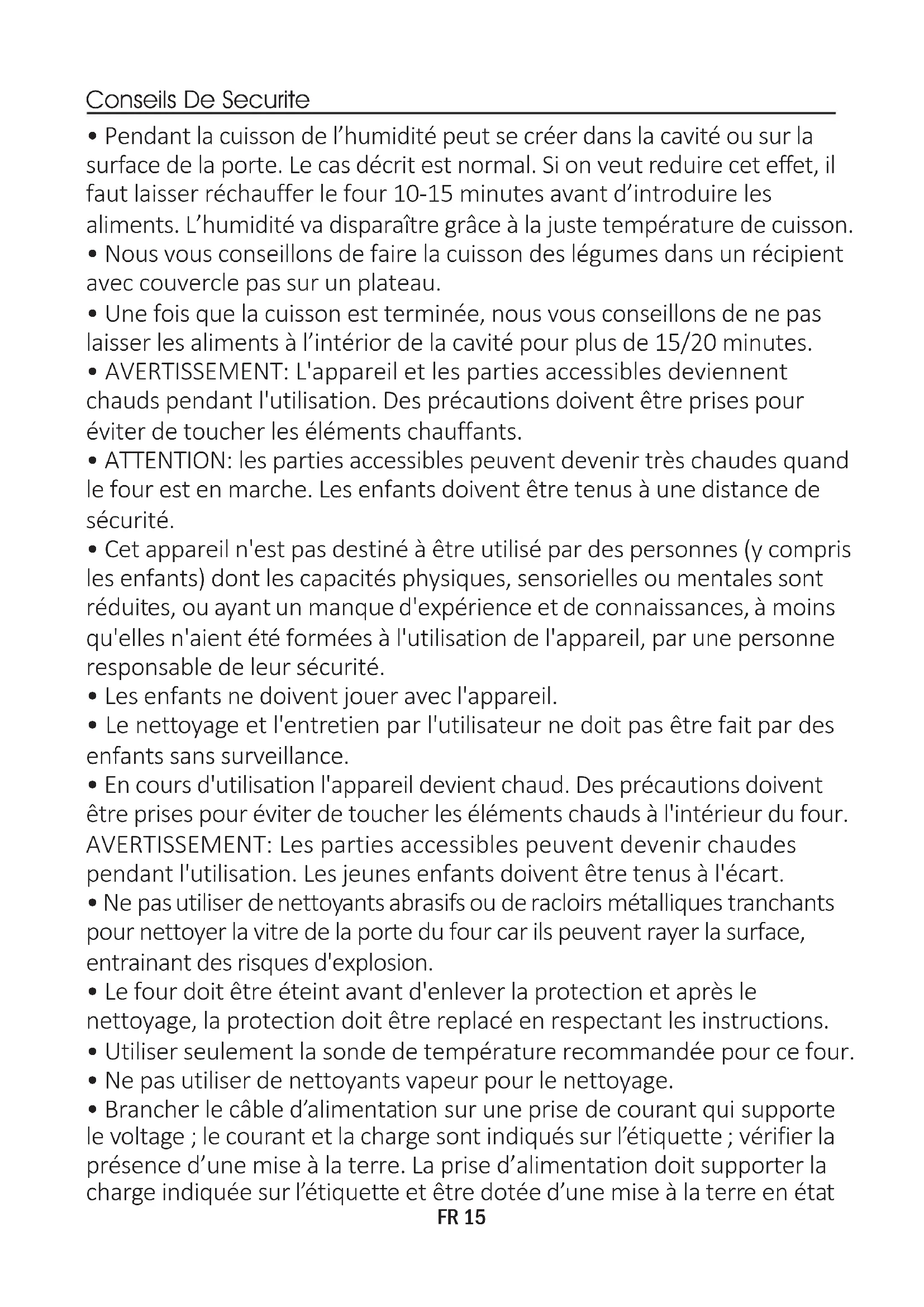 - Utiliser seulement la sonde de température recommandée pour ce four.