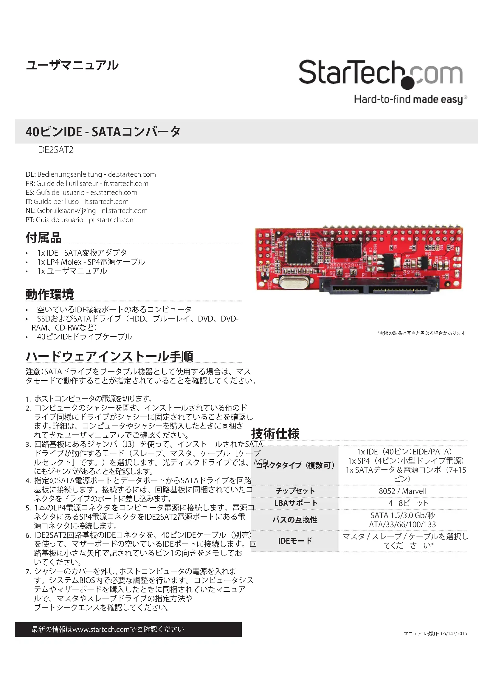 Retrouvez gratuitement la notice de l'appareil IDE2SAT2 StarTech.com au format PDF.