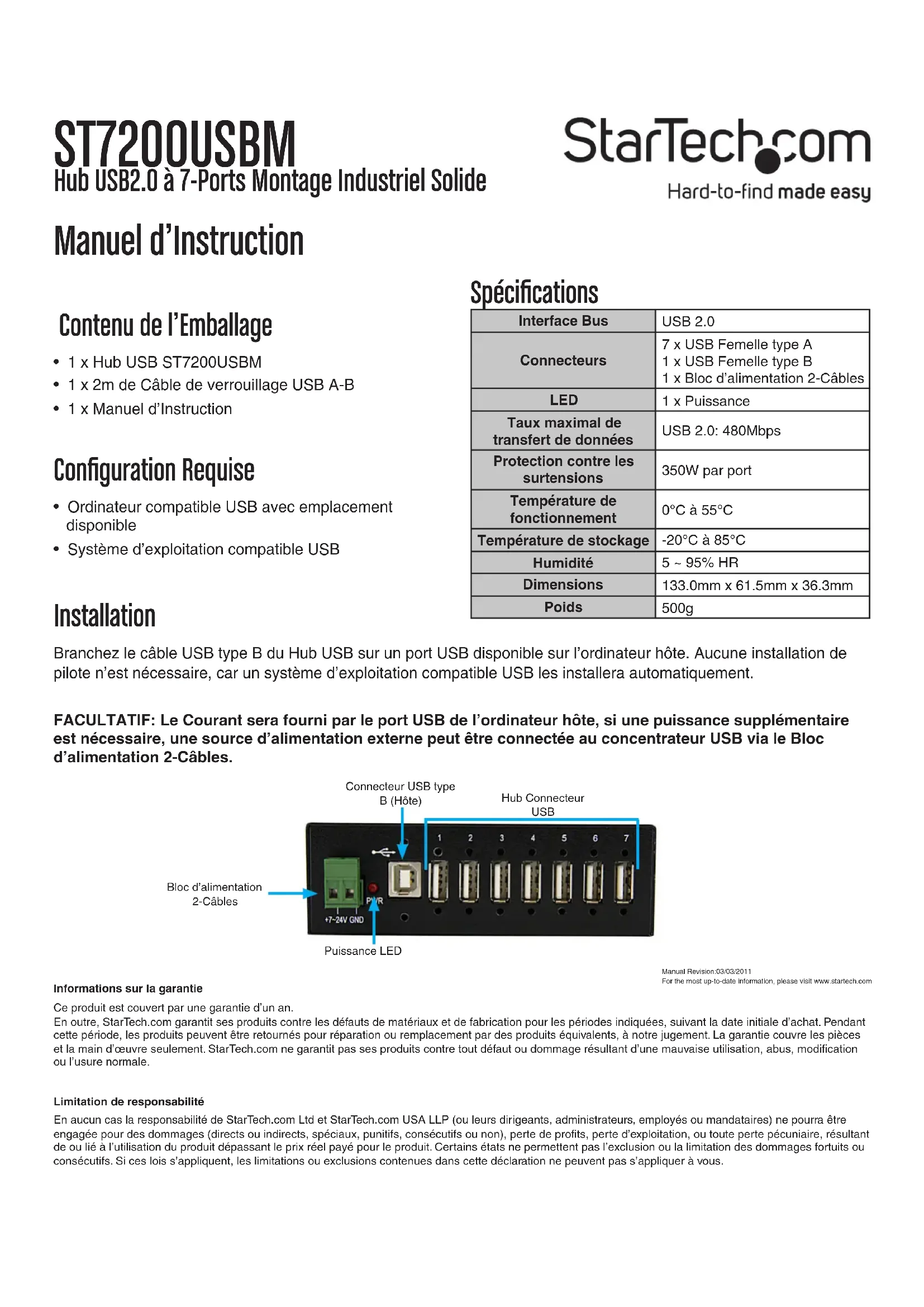 MODE D'EMPLOI ST7200USBM StarTech.com