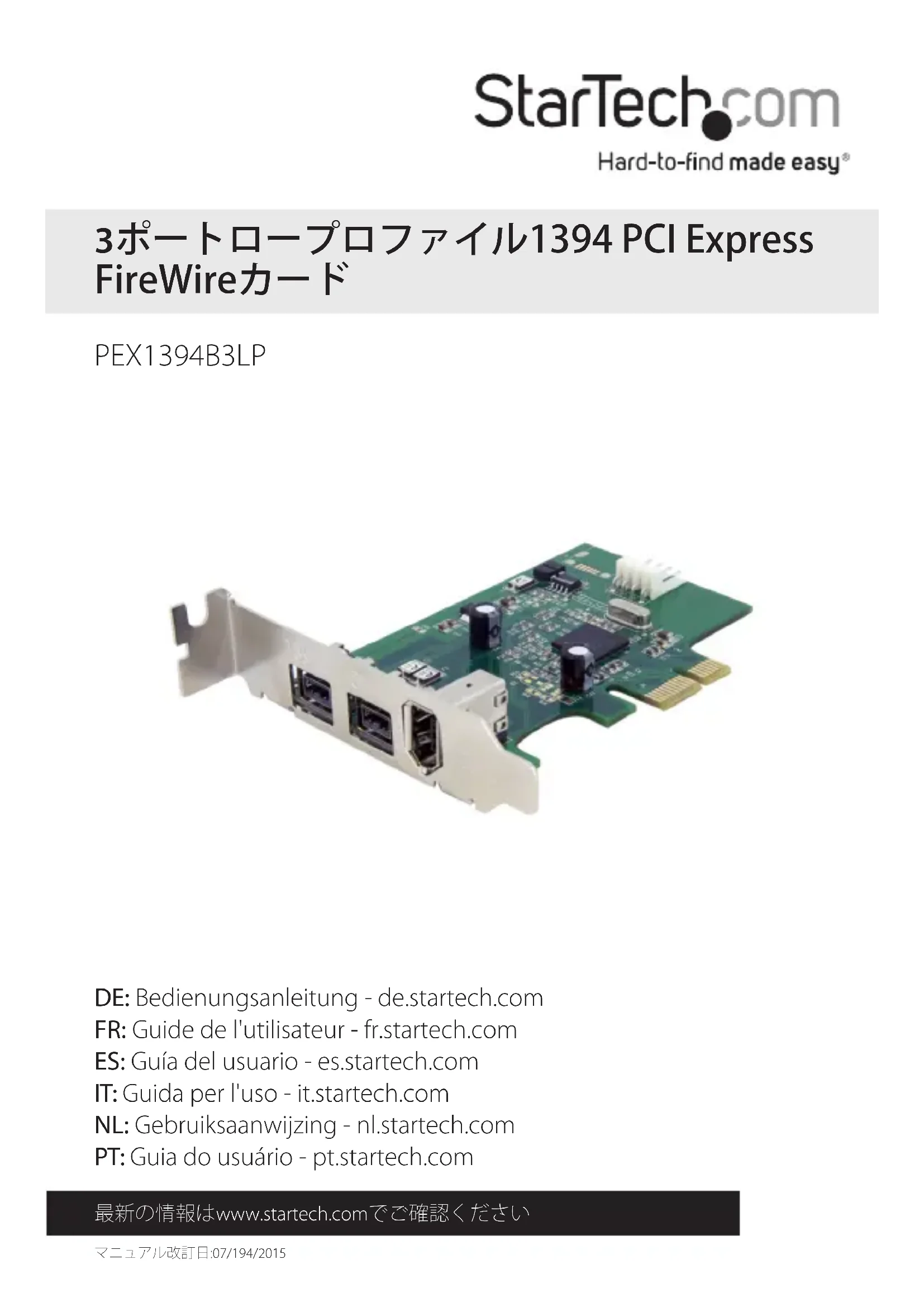 PEX1394B3LP - Contrôleur StarTech.com - Notice d'utilisation et mode d'emploi gratuit