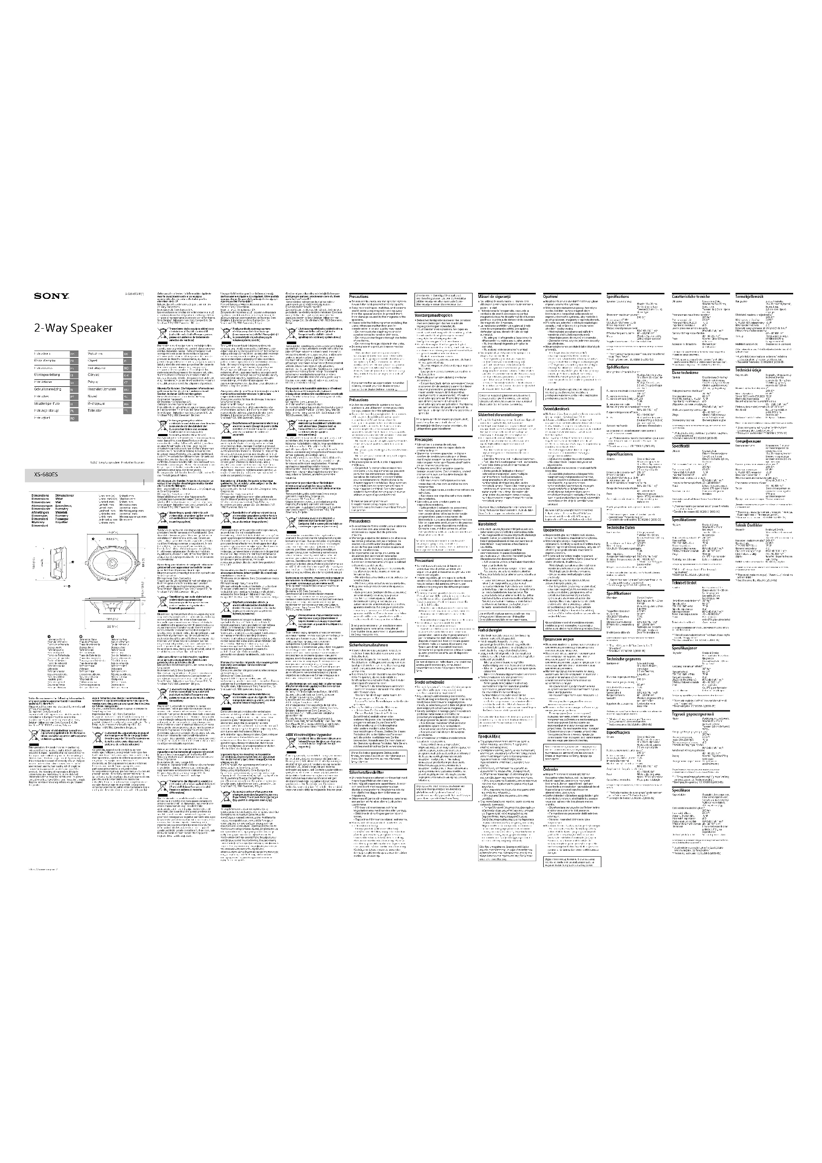 XS680ES - Haut-parleur voiture SONY - Notice d'utilisation et mode d'emploi gratuit