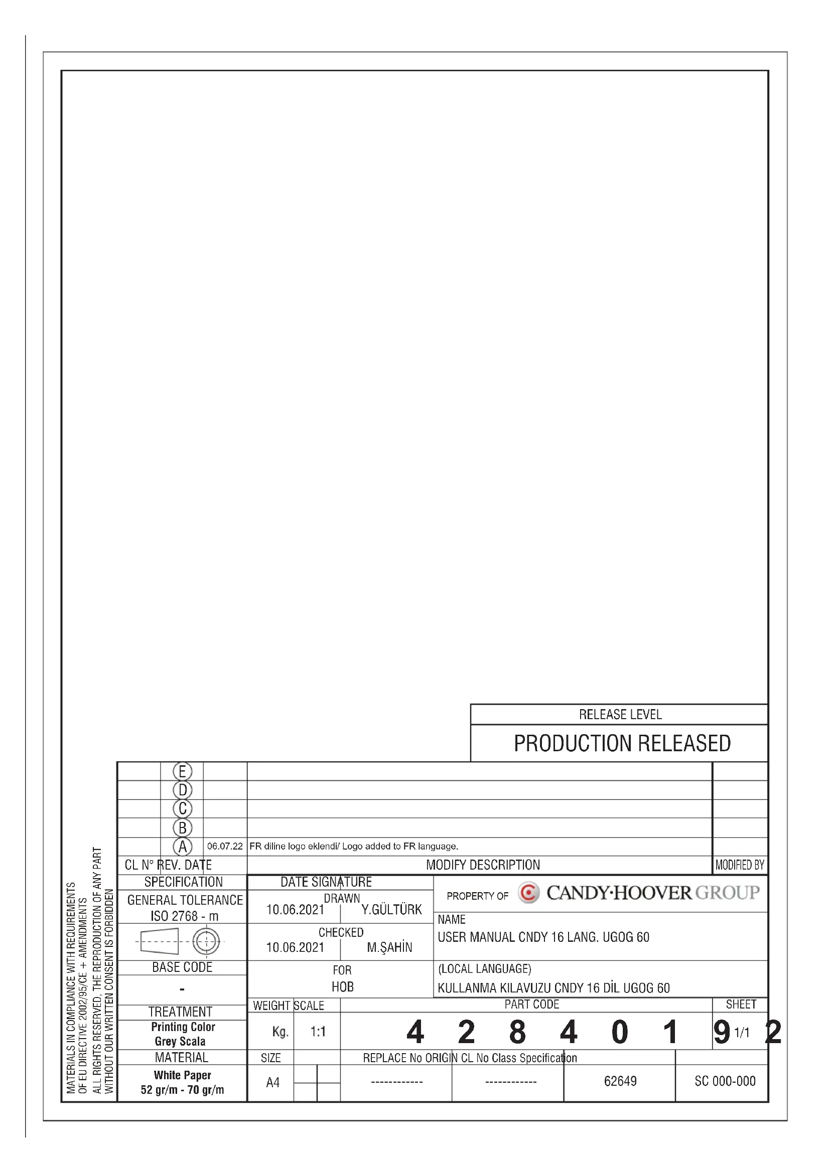 Retrouvez gratuitement la notice de l'appareil CSG6B CANDY au format PDF.