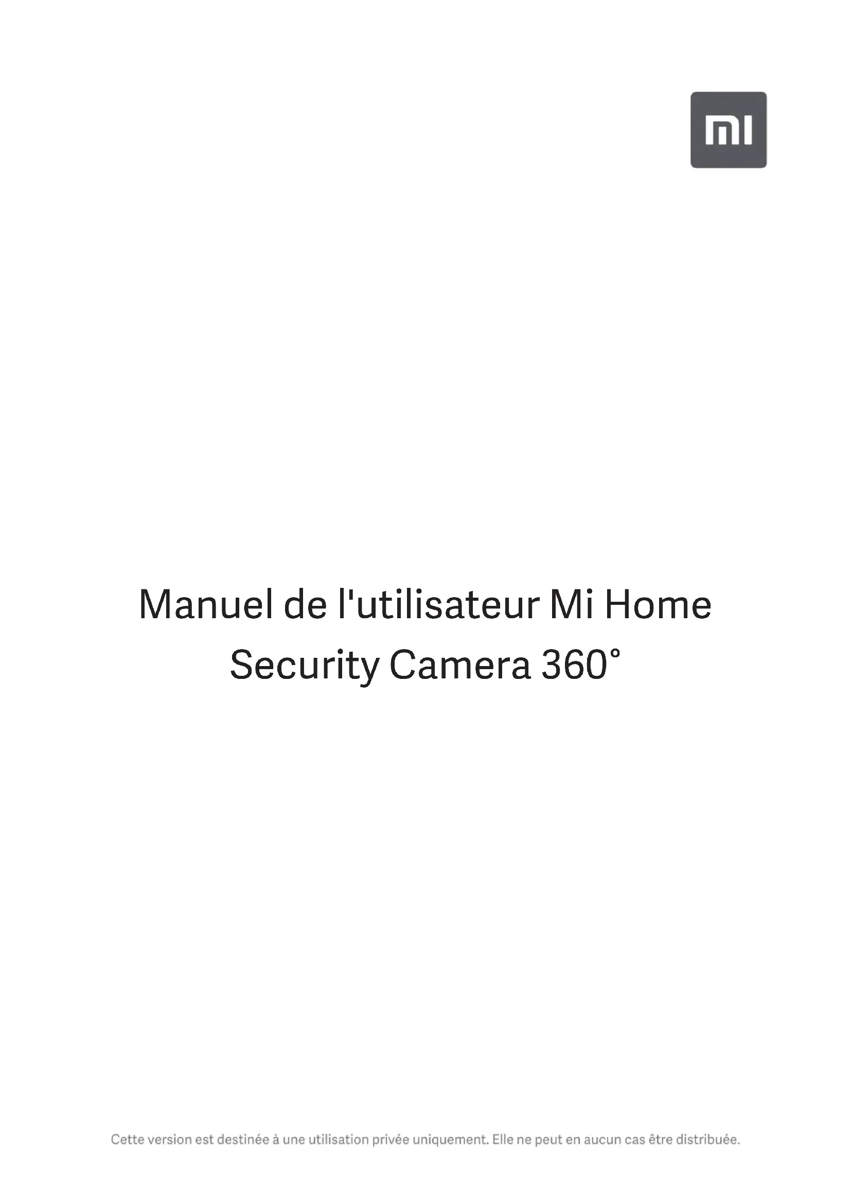 Cette version est destinée à une utilisation privée uniquement. Elle ne peut en aucun cas être distribuée. Manuel de l'utilisateur Mi Home Security Camera 360°Cette version est destinée à une utilisation privée uniquement. Elle ne peut en aucun cas être distribuée.