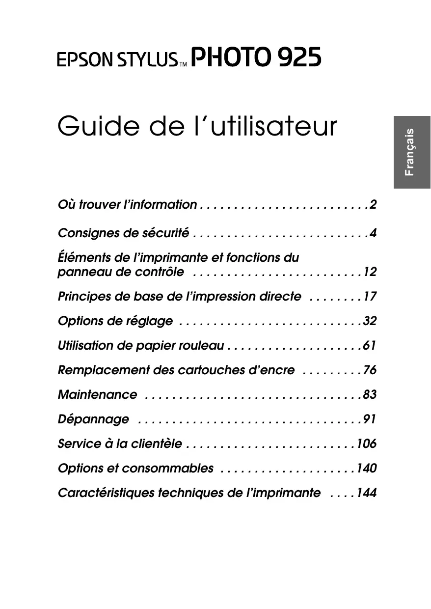 STYLUS PHOTO 925 - Imprimante photo EPSON - Notice d'utilisation et mode d'emploi gratuit