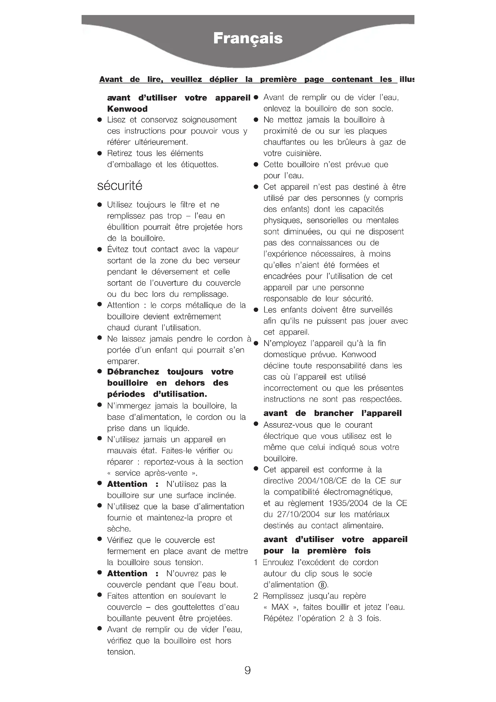 vant d’utiliser votre appareil Kenwood
