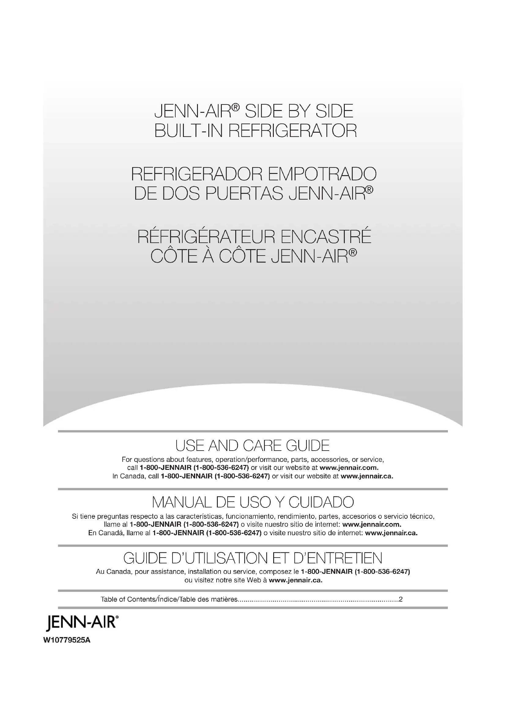 12/14 CLAUSE D'EXONÉRATION DE RESPONSABILITÉ AU TITRE DES GARANTIES IMPLICITES LES GARANTIES IMPLICITES, Y COMPRIS LES GARANTIES APPLICABLES DE QUALITÉ MARCHANDE OU D'APTITUDE À UN USAGE PARTICULIER, SONT LIMITÉES À UN AN OU À LA PLUS COURTE PÉRIODE AUTORISÉE PAR LA LOI. Certains États et provinces ne permettent pas de limitation sur la durée des garanties implicites de qualité marchande ou d'aptitude à un usage particulier, de sorte que la limitation ci-dessus peut ne pas être applicable dans votre cas. Cette garantie vous confère des droits juridiques spécifiques et vous pouvez également jouir d’autres droits qui peuvent varier d’une juridiction à l'autre. EXONÉRATION DE RESPONSABILITÉ DANS LES DOMAINES NON COUVERTS PAR LA GARANTIE Jenn-Air décline toute responsabilité au titre de la qualité, de la durabilité ou en cas de dépannage ou de réparation nécessaire sur ce gros appareil ménager autre que les responsabilités énoncées dans la présente garantie. Si vous souhaitez une garantie plus étendue ou plus complète que la garantie limitée fournie avec ce gros appareil ménager, adressez-vous à Jenn-Air ou à votre détaillant pour obtenir les modalités d'achat d'une garantie étendue. LIMITATION DES RECOURS; EXCLUSION DES DOMMAGES FORTUITS OU INDIRECTS LE SEUL ET EXCLUSIF RECOURS DU CLIENT DANS LE CADRE DE LA PRÉSENTE GARANTIE LIMITÉE CONSISTE EN LA RÉPARATION PRÉVUE PAR LA PRÉSENTE. JENN-AIR N’ASSUME AUCUNE RESPONSABILITÉ POUR LES DOMMAGES FORTUITS OU INDIRECTS. Certains États et certaines provinces ne permettent pas l’exclusion ou la limitation des dommages fortuits ou indirects de sorte que ces limitations et exclusions peuvent ne pas être applicables dans votre cas. Cette garantie vous confère des droits juridiques spécifiques et vous pouvez également jouir d’autres droits qui peuvent varier d’une juridiction à l'autre.W10779525A ®/TM ©2015 Whirlpool. All rights reserved. ®/TM ©2015 Whirlpool. Tous droits réservés. ®/TM ©2015 Whirlpool. Todos los derechos reservados. 9/15