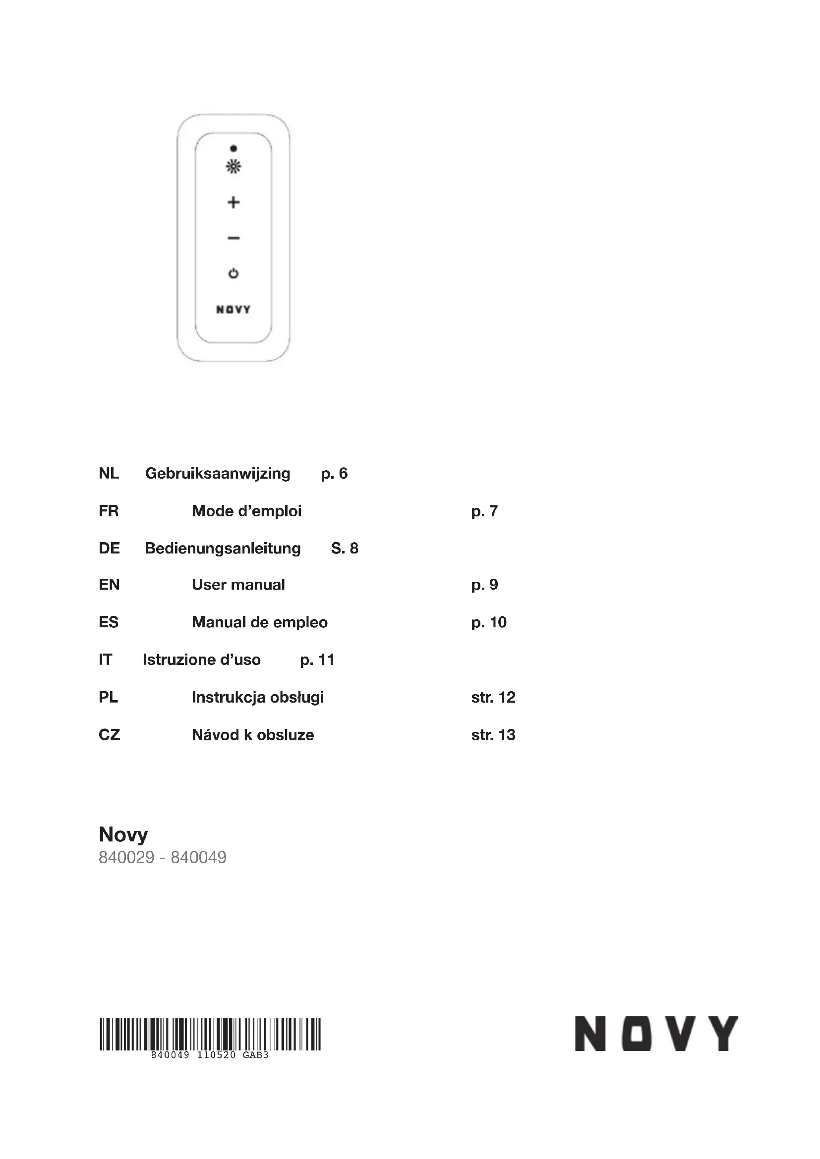 840049 - Télécommande NOVY - Notice d'utilisation et mode d'emploi gratuit