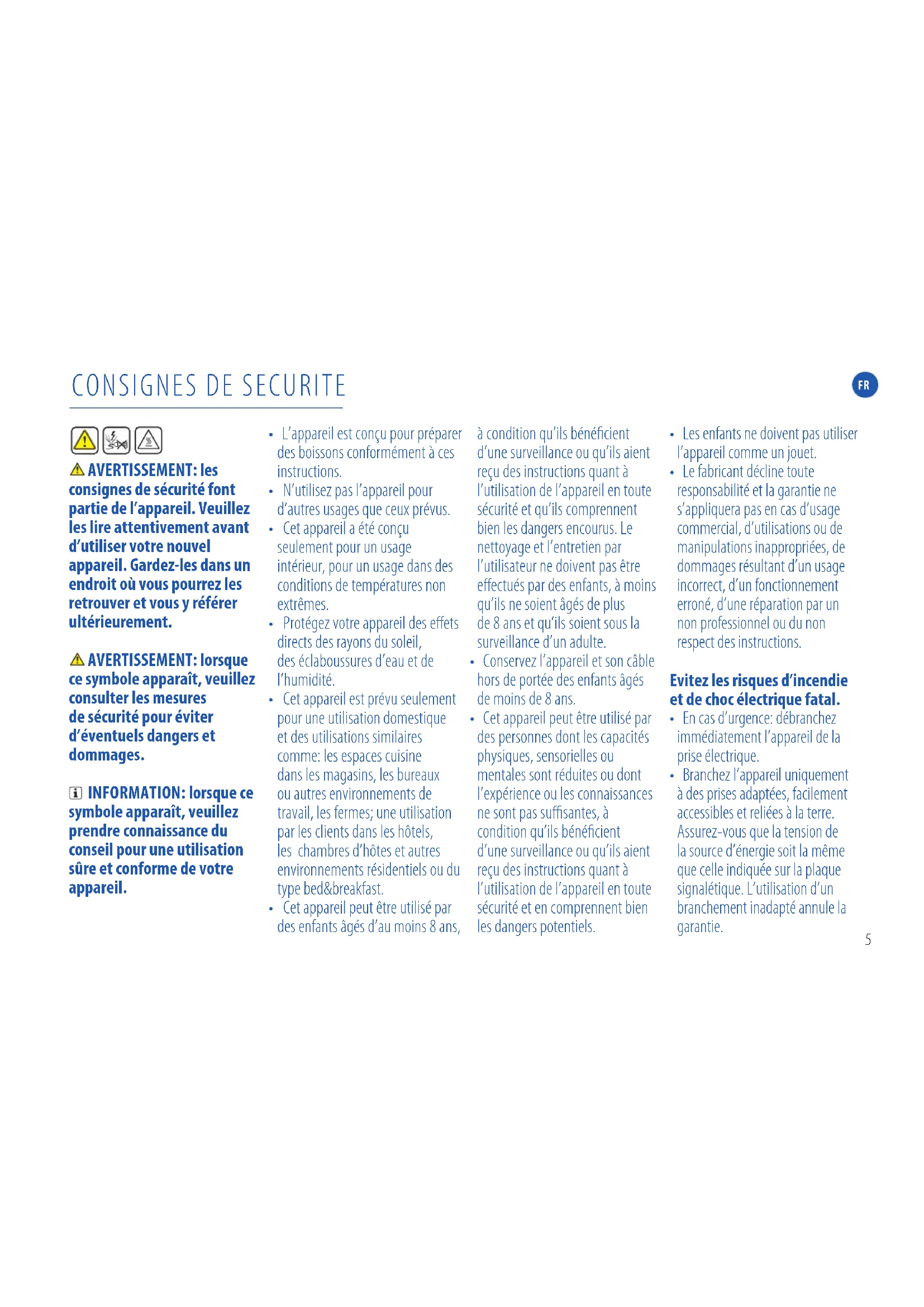 consignes de sécurité font partie de l’appareil . Veuillez les lire attentivement avant d’utiliser votre nouvel appareil . Gardez-les dans un endroit où vous pourrez les retrouver et vous y référer ultérieurement