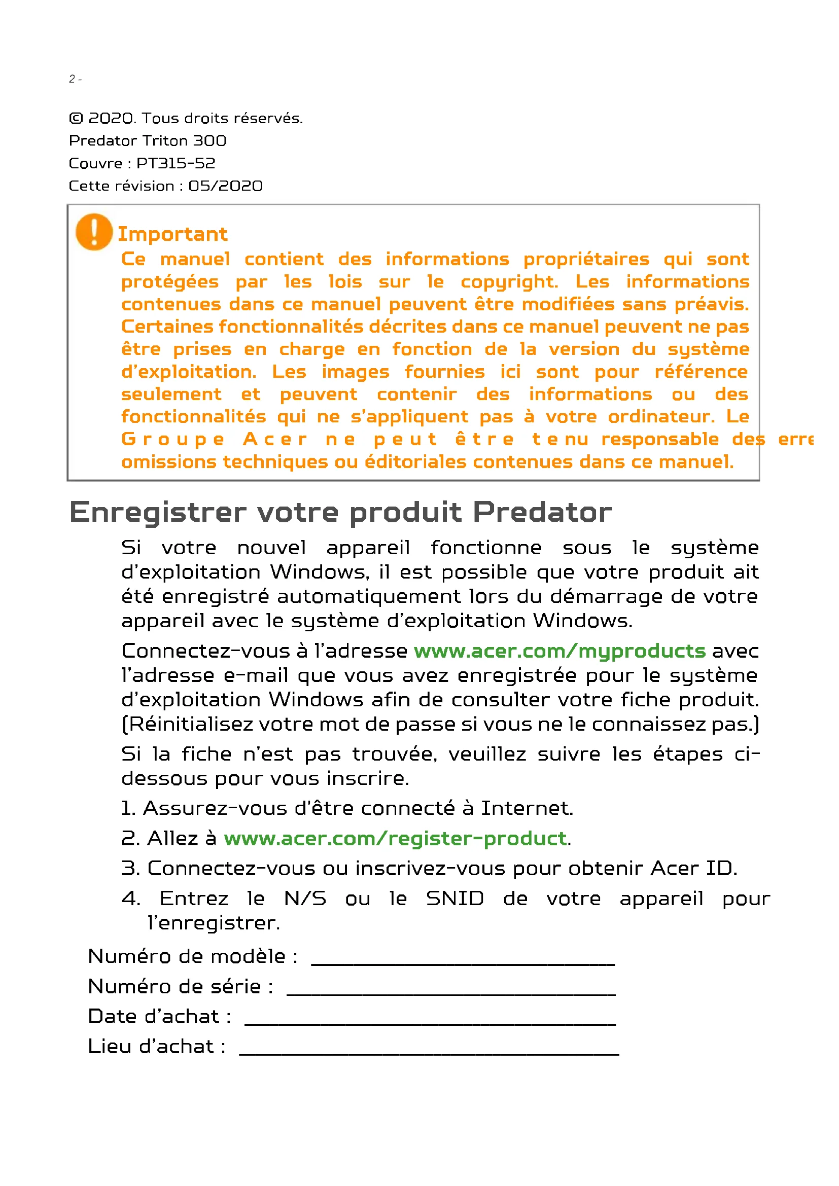 FOIRE AUX QUESTIONS - Predator Triton 300 ACER