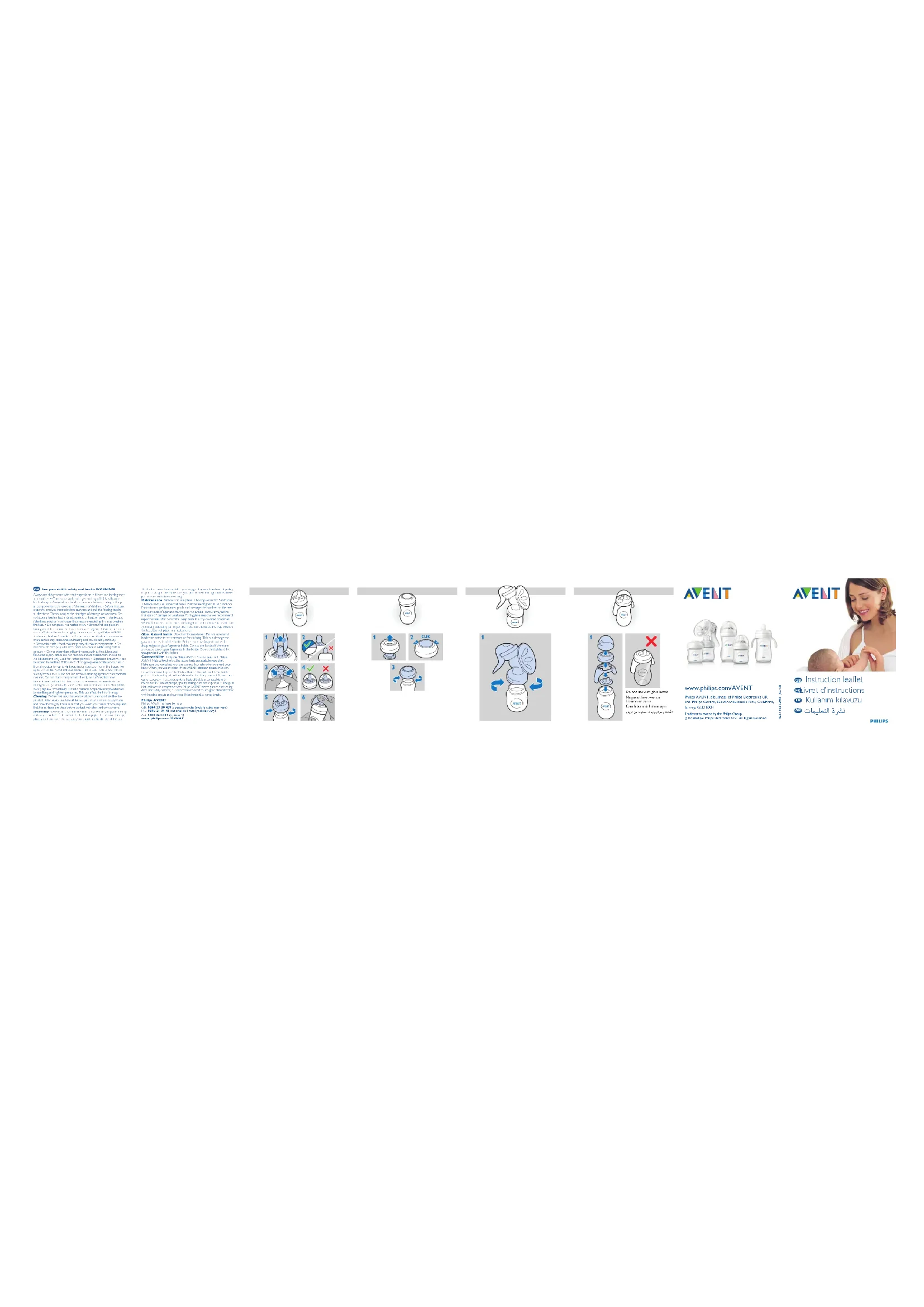 - Lasuccioncontinueetprolongéedeliquideentraînel’apparition decaries.•Vérieztoujourslatempératuredesalimentsavant denourrirvotreenfant.•Rangeztouslesélémentsnonutilisés horsdeportéedesenfants.•Lavezceproduitavantlapremière utilisation.Avantchaqueutilisation,examinezlatétined’alimentation ettirez-ladanstouslessens.Jetezlatétineaumoindresignede détériorationoudefragilité.N’exposezpaslatétined’alimentation directementausoleilouprèsd’unesourcedechaleuretnela laissezpasdansunproduitdésinfectant(solutionstérilisante) pluslongtempsqueladuréerecommandéecarcelapourraitla fragiliser.•Neplacezpasleproduitdansunfourchaud.•Avantla premièreutilisation,maintenezlebiberonimmergédansdel’eau bouillantependant5minutespourunemeilleurehygiène.Nettoyez avantchaqueutilisation.•Lavezetrincezabondamment,puis effectuezlastérilisationàl’aided’unstérilisateurPhilipsAVENTou plongezl’élémentdansdel’eaubouillantependant5minutes.•Ne réchauffezpaslescontenusaumicro-ondes:ilsrisqueraientdene pasêtrechauffésdefaçonhomogèneetpourraientébouillanter votrebébé.•Passeaulave-vaisselle.Lescolorantsalimentaires peuventprovoquerunedécolorationdescomposants.•Nelaissez pasdesenfantsjoueraveclespetitespiècesoumarcher/courir toutenutilisantunbiberonouunetasse.•Lesboissonsautresque lelaitetl’eau(jusdefruitsouboissonsaromatiséessucrées,par exemple)nesontpasrecommandées.Encasd’utilisation,veillezà cequ’ellessoientbiendiluéesetàcequelesenfantsnelessirotent paspendantunepériodeprolongée.•Lelaitmaternel,stockédans desbiberons/récipientsenpolypropylènePhilipsAVENTstérilisés, peutêtreconservéauréfrigérateurpendant48heuresmaximum (pasdanslaporte)ouaucongélateurpendant3moismaximum.Ne recongelezjamaislelaitmaterneletn’ajoutezjamaisdelaitmaternel fraisàdulaitdéjàcongelé.•N’utilisezpasd’agentsdenettoyage abrasifsouantibactériens.Neplacezpaslesélémentsdirectement surdessurfacesayantéténettoyéesàl’aidedeproduitsdenettoyage antibactériens.•Uneconcentrationexcessivededétergentpourrait provoquerdesssuresdanslescomposantsplastiques.Remplacez immédiatementtoutélémentssuré.•Ilsepeutquelespropriétés matériellesduplastiquesoientaffectéesparlastérilisationetles températuresélevées,cequipourraitagirsurlaformeducapuchon. Nettoyage Avantlapremièreutilisation,démonteztoutesles pièces,etnettoyezetstérilisezceproduit.Aprèschaqueutilisation, démonteztousleséléments,puislavez-lesàl’eauchaudesavonneuse etrincez-lesabondamment.Lavez-voussoigneusementlesmainset assurez-vousquelessurfacessontpropresavanttoutcontactavec lesélémentsstérilisés. AssemblageLorsquevousassemblezlebiberon,veillezàplacer lecapuchonverticalementsurcelui-cianquelatétinesoitorientée verslehaut.Pourenleverlecapuchon,placezvotremainsurle capuchonetvotrepoucedanslecreuxdecedernier.Ilestplusfacile d’assemblerlatétineenlafaisanttournerverslehautplutôtquede latirerenlignedroite.Veillezàtirerlatétinejusqu’àcequesapartie inférieuresoitaumêmeniveauquelabagued’étanchéité. EntretienAvantlapremièreutilisation,immergezlebiberondans del’eaubouillantependant5minutes.•Avantchaqueutilisation, examineztousleséléments.Tirezlatétined’alimentationdanstous lessens.Pourdesperformancesoptimales,pincezetmassezle chiffresituésurlatétineentrel’indexetlepouceavantutilisation. Jetezlatétineaumoindresignededétériorationoudefragilité. Pourlesraisonsd’hygiène,nousvousrecommandonsderemplacer lestétinesaprès3mois.Conservezlestétinesdansunrécipientsec etfermé.Lorsquevousnelesutilisezpas,n’exposezpaslestétines ausoleilouprèsd’unesourcedechaleuretneleslaissezpasdans unproduitdésinfectant(solutionstérilisante)pluslongtempsquela duréerecommandéecarcelapourraitlesendommager.Neplacez paslestétinesdansunfourchaud. Biberon « Natural » en verre Lesbiberonsenverrepeuventse casser.N’utilisezpasdemétalàl’intérieurdubiberonpourmélanger descontenusoupourlenettoyagecarcelapourraitendommager l’intérieurdubiberonenverre.Avantchaqueutilisation,vériezque lesbordsdubiberonnesontpascoupantsetqu’aucunfragmentde verren’estprésentdanslebiberon.N’utilisezpaslesbiberonss’ils présententdesssuresous’ilscontiennentdesfragmentsdeverre. Nelaissezpasbébéboireaveccebiberonsanssurveillance. CompatibilitéUtilisezlestétinesPhilipsAVENT«Natural» uniquementaveclesbiberonsPhilipsAVENT«Natural».Lestétines derechangepeuventêtreachetéesséparément.Assurez-vous d’utiliserunetétineaudébitadéquatlorsquevousnourrissezvotre bébé.SivousutilisezunstérilisateurPhilipsAVENTplusancien, vériezsurlesiteWebcommentplacerlebiberon«Natural». NemélangezpaslesélémentsettétinesdebiberonsClassiques avecceuxdesbiberons«Natural».Ilsepeutqu’ilsnesoientpas compatiblesetqu’unefuiteseproduise.•Lebiberon«Natural» enpolypropylèneestcompatibleaveclestire-lait,becs,disques d’étanchéitéethautsdetassePhilipsAVENT.•Lebiberon «Natural»enverreestcompatibleaveclestire-laitetdisques d’étanchéitéPhilipsAVENT.Pourdesraisonsdesécurité,l’utilisation debiberons«Natural»enverreavecdespoignées,becsethautsde tassen’estpasrecommandée.Silebiberontombe,ilpeutsecasser. Philips AVENT PhilipsAVENTàvotreécoute: FR:01 57 32 40 51 (France seulement) www.philips.com/AVENT