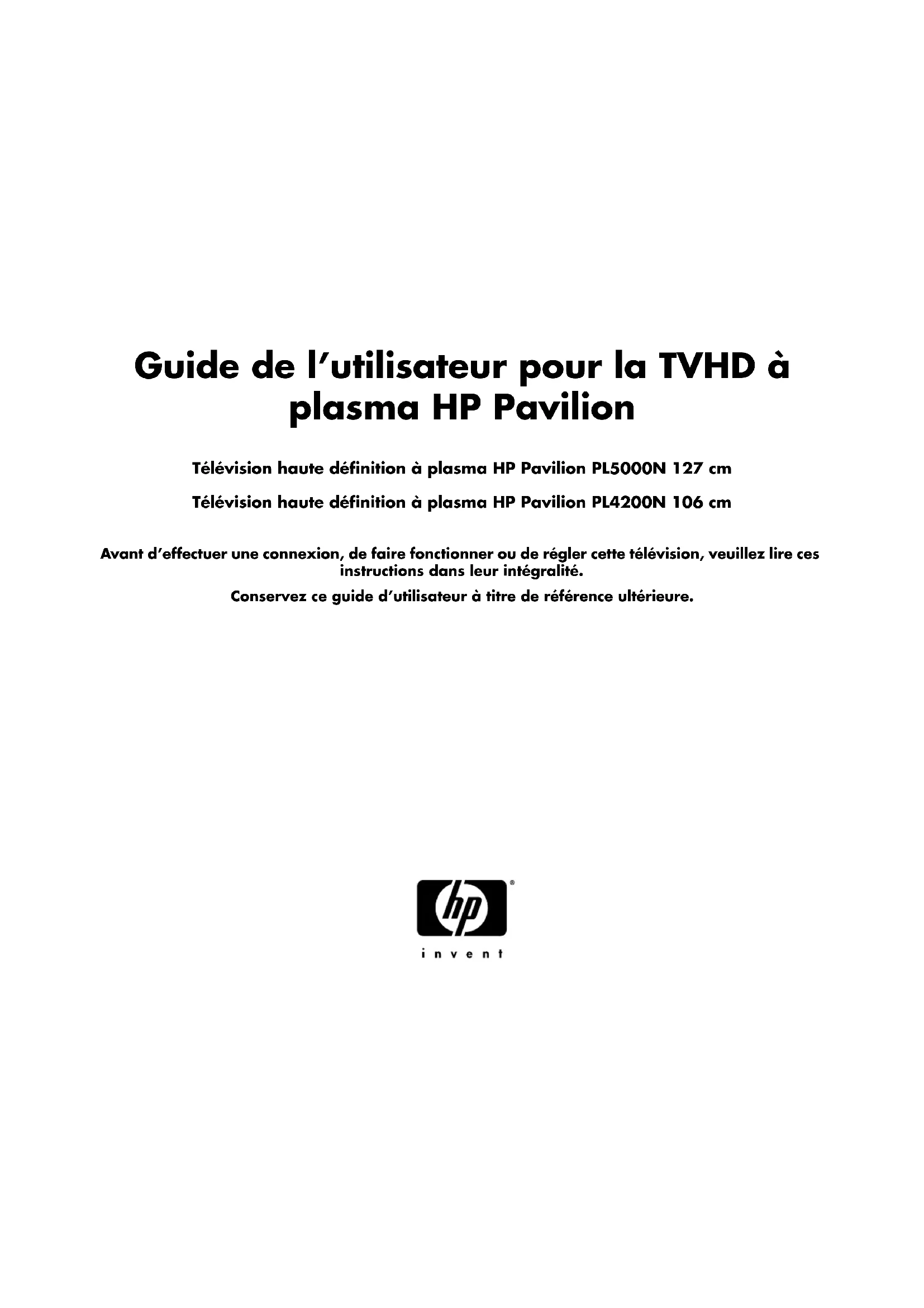 antenne extérieure, vous devez faire très attention à ne pas toucher les lignes et circuits d’alimentation, tout contact pouvant être mortel. A nos client(e)s HP Bienvenue dans la famille des clients HP. Nous espérons que votre téléviseur à plasma vous donnera des années de divertissements. Pour optimiser l’avantage de votre téléviseur, veuillez lire ces instructions avant d’effectuer des réglages. Conservez ces instructions à titre de référence ultérieure. Placez le bon d’achat et enregistrez le numéro du produit ainsi que le numéro de série de votre télévision dans l’espace prévu à cet effet sur la dernière page de ces instructions.