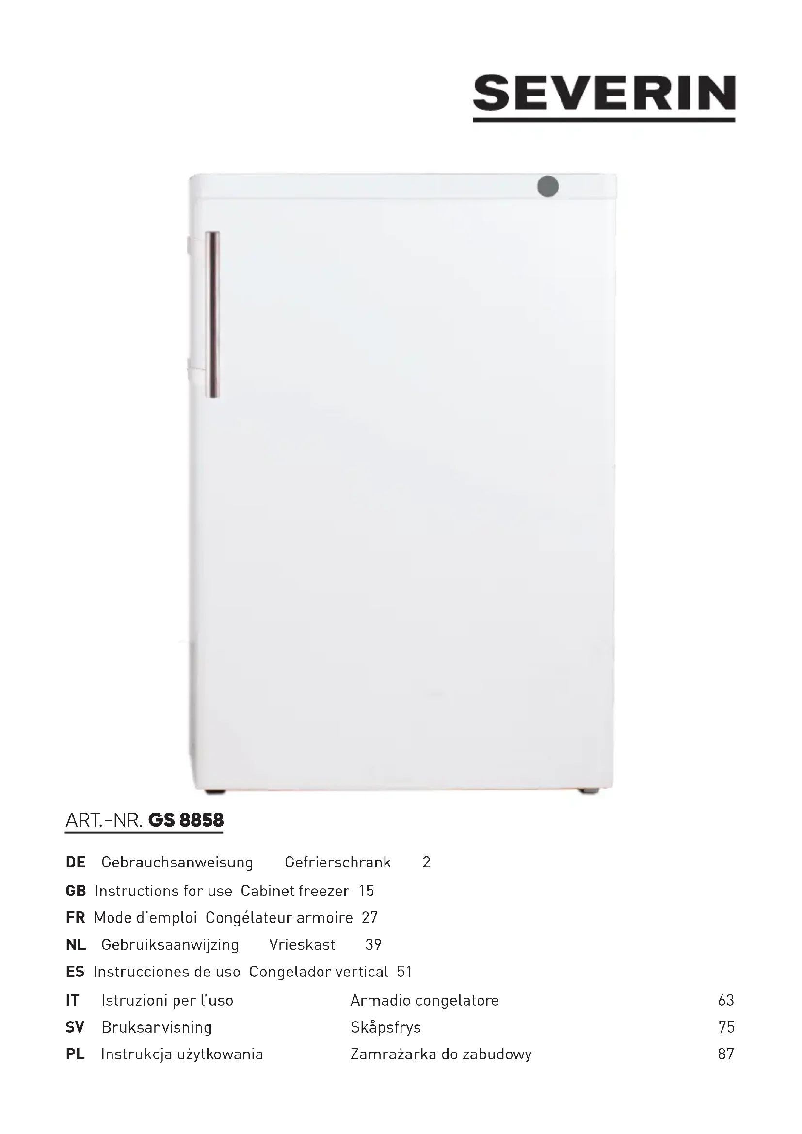 GS 8858 - Congélateur SEVERIN - Notice d'utilisation et mode d'emploi gratuit