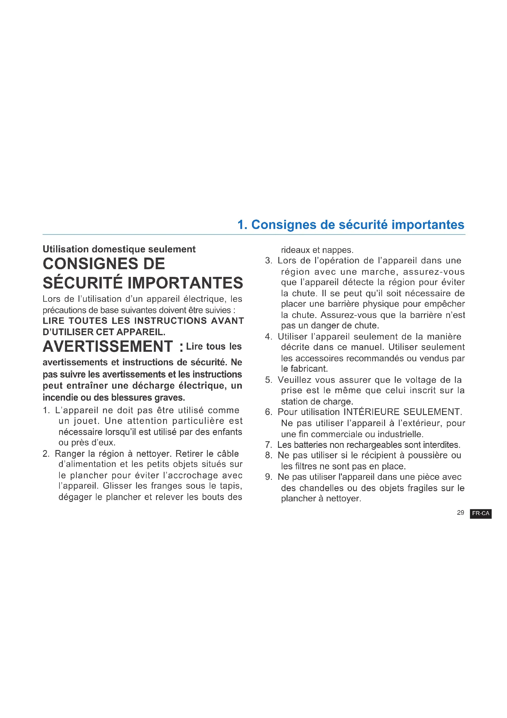 1. Consignes de sécurité importantes