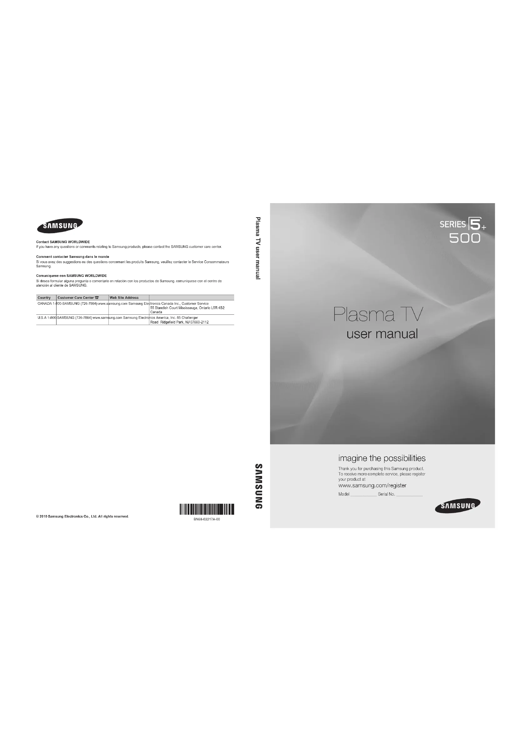 Vídeos 33 Virtual Surround 18 Vista básica 36 Vol.Auto 18 Volumen 6 [PC500-NA]BN68-03217A-00L03.indb 52 2010-09-07 오전 10:47:27This page is intentionally left blank. [PC500-NA]BN68-03217A-00L03.indb 53 2010-09-07 오전 10:47:272 Français Les figures et les illustrations de ce mode d’emploi ne sont fournies qu’à titre de référence. L’apparence réelle du produit pourrait être différente. Le design et les spécifications du produit peuvent être modifiés sans préavis. Remarques importantes sur la garantie relative au format de l'image du téléviseur