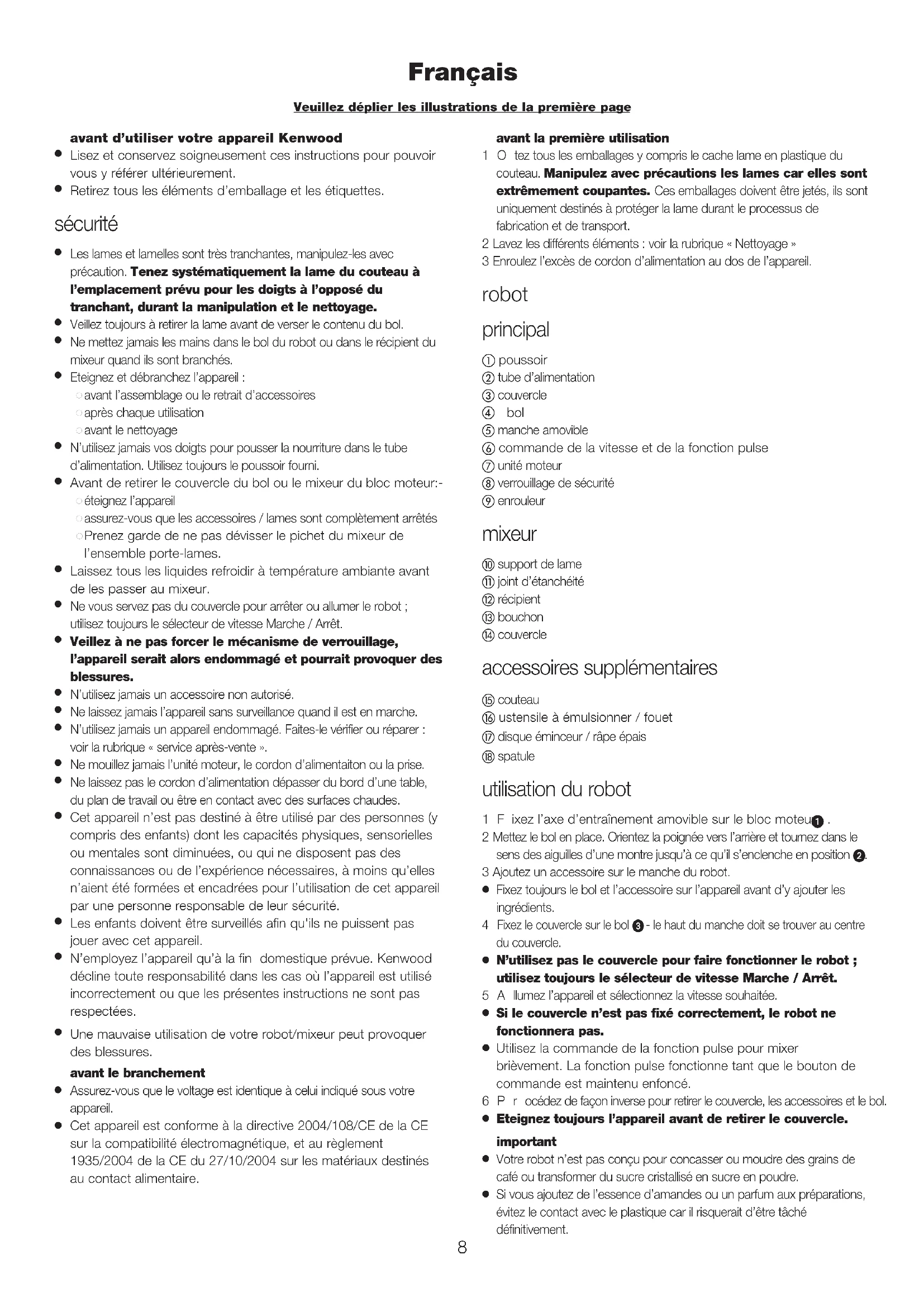Une mauvaise utilisation de votre robot/mixeur peut provoquer des blessures. avant le branchement