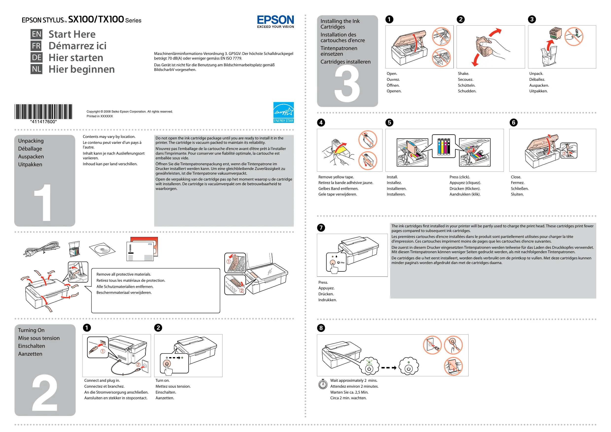 Téléchargez la notice de votre Imprimante multifonction au format PDF gratuitement ! Retrouvez votre notice STYLUS SX100 - EPSON et reprennez votre appareil électronique en main. Sur cette page sont publiés tous les documents nécessaires à l'utilisation de votre appareil STYLUS SX100 de la marque EPSON.