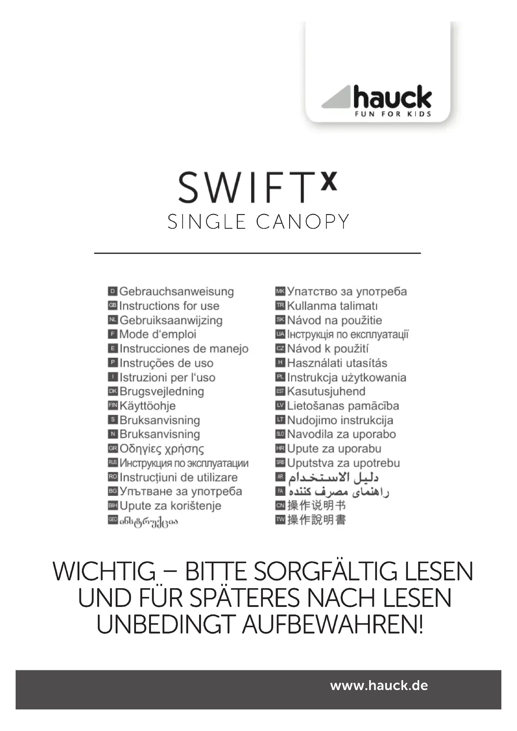 Swift X Canopy - Poussette HAUCK - Notice d'utilisation et mode d'emploi gratuit
