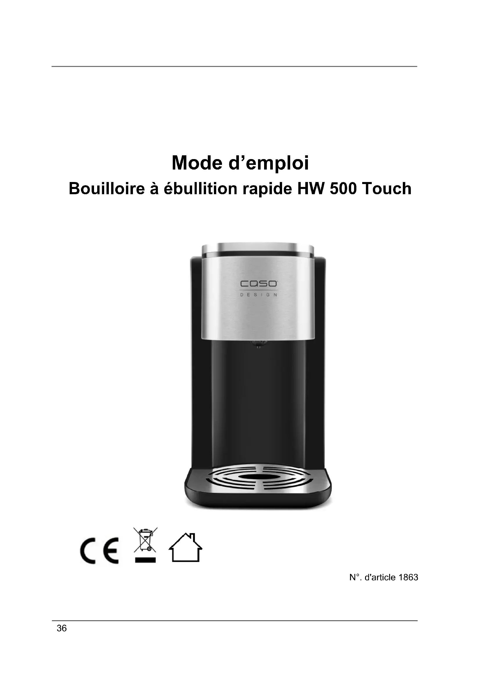 MODE D'EMPLOI HW 500 Touch CASO