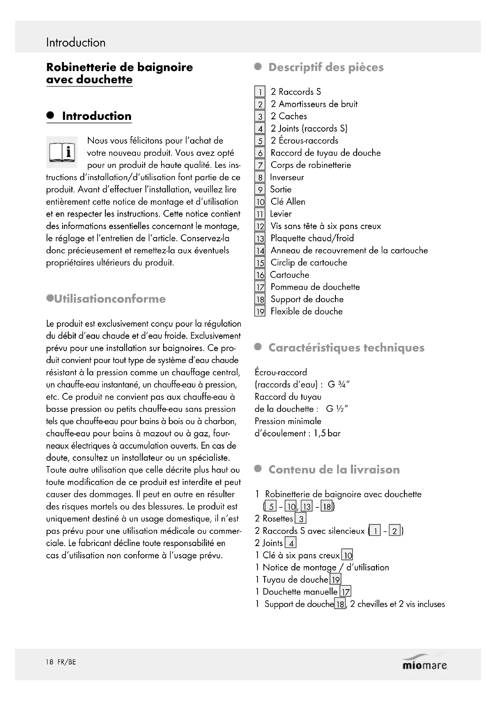1 Notice de montage / d‘utilisation 1 Tuyau de douche