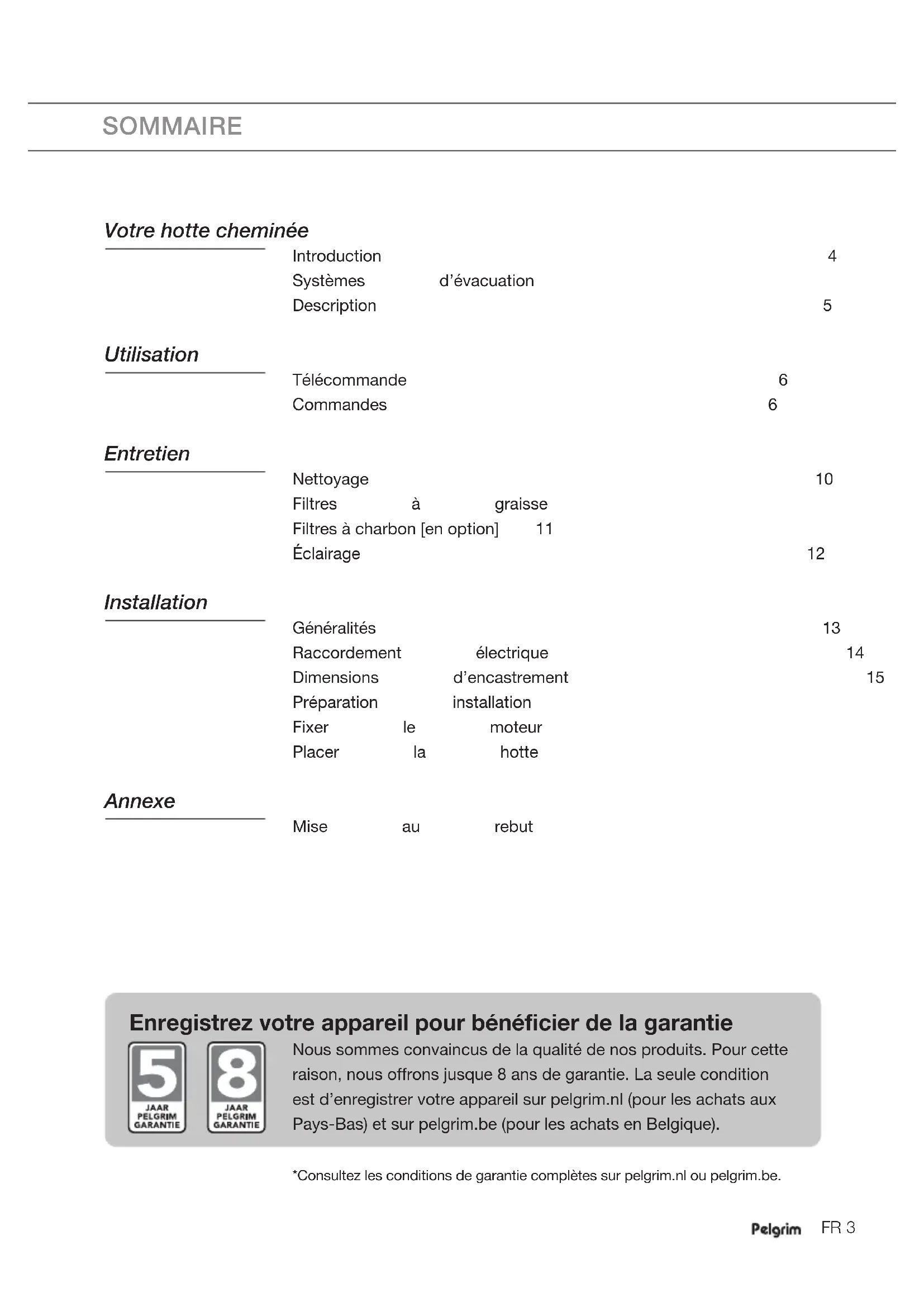 Nous sommes convaincus de la qualité de nos produits. Pour cette raison, nous offrons jusqu'à 8 ans de garantie. La seule condition est d'enregistrer votre appareil sur pelgrim. nl (pour les achats aux Pays-Bas) et sur pelgrim. be (pour les achats en Belgique).