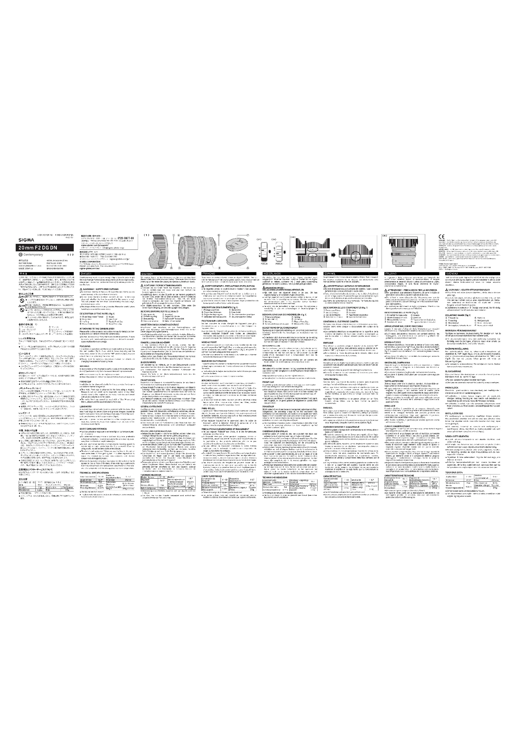 MODE D'EMPLOI 20mm F2 DG DN SIGMA