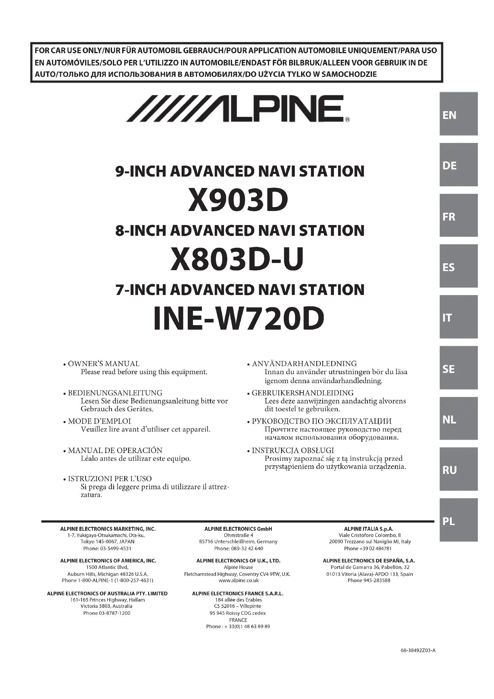 Retrouvez gratuitement la notice de l'appareil X903DDU8 ALPINE au format PDF.