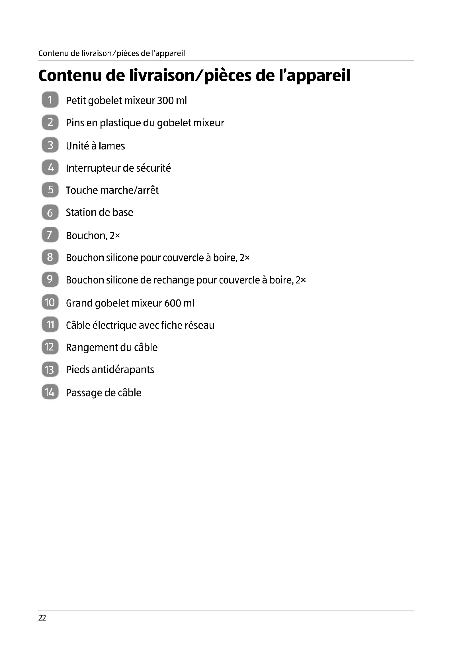 Contenu de livraison⁄pièces de l’appareil