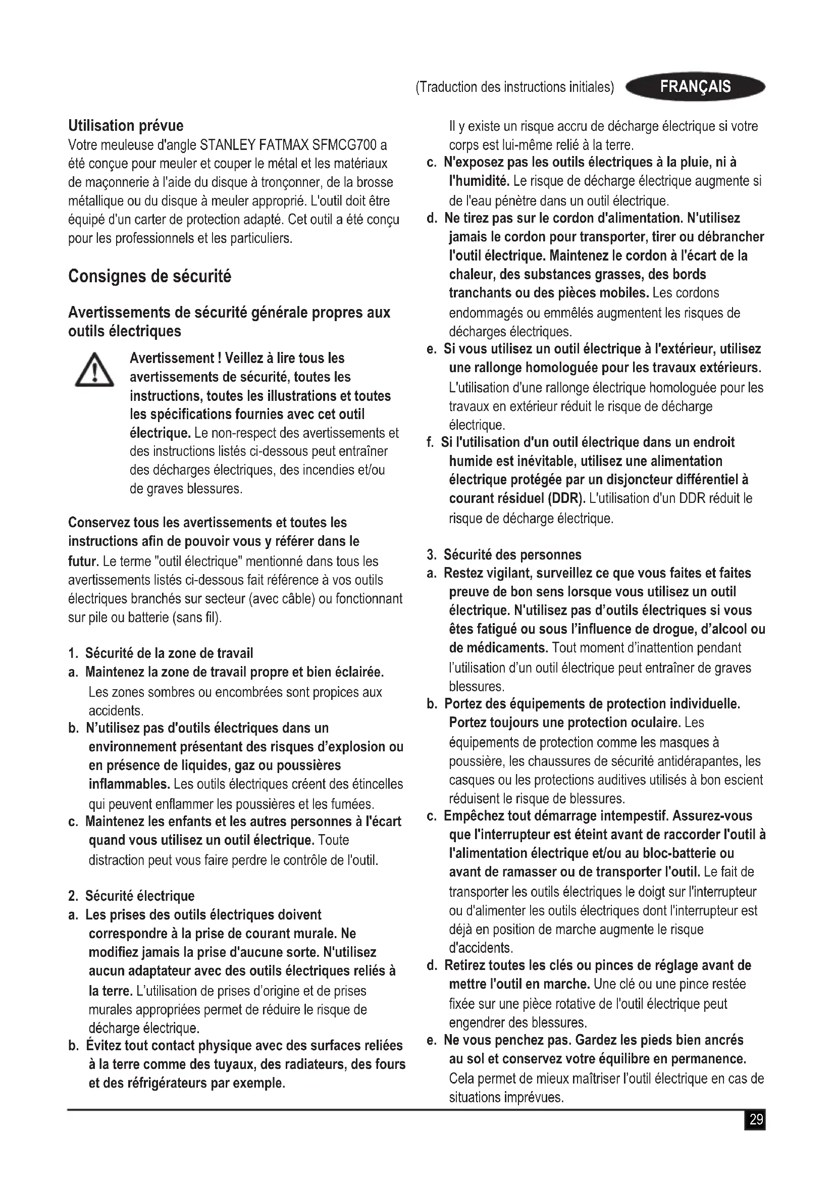 MODE D'EMPLOI SFMCG700 STANLEY