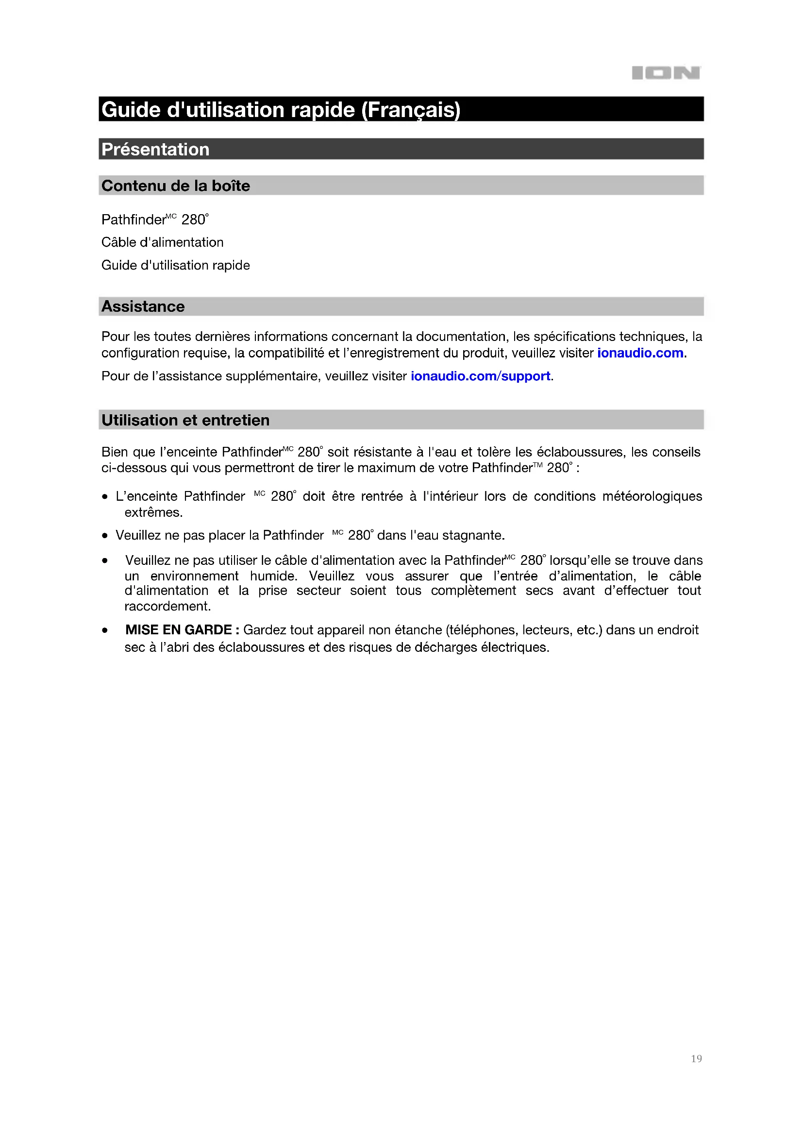 Pathfinder 280 - Haut-parleur ION - Notice d'utilisation et mode d'emploi gratuit