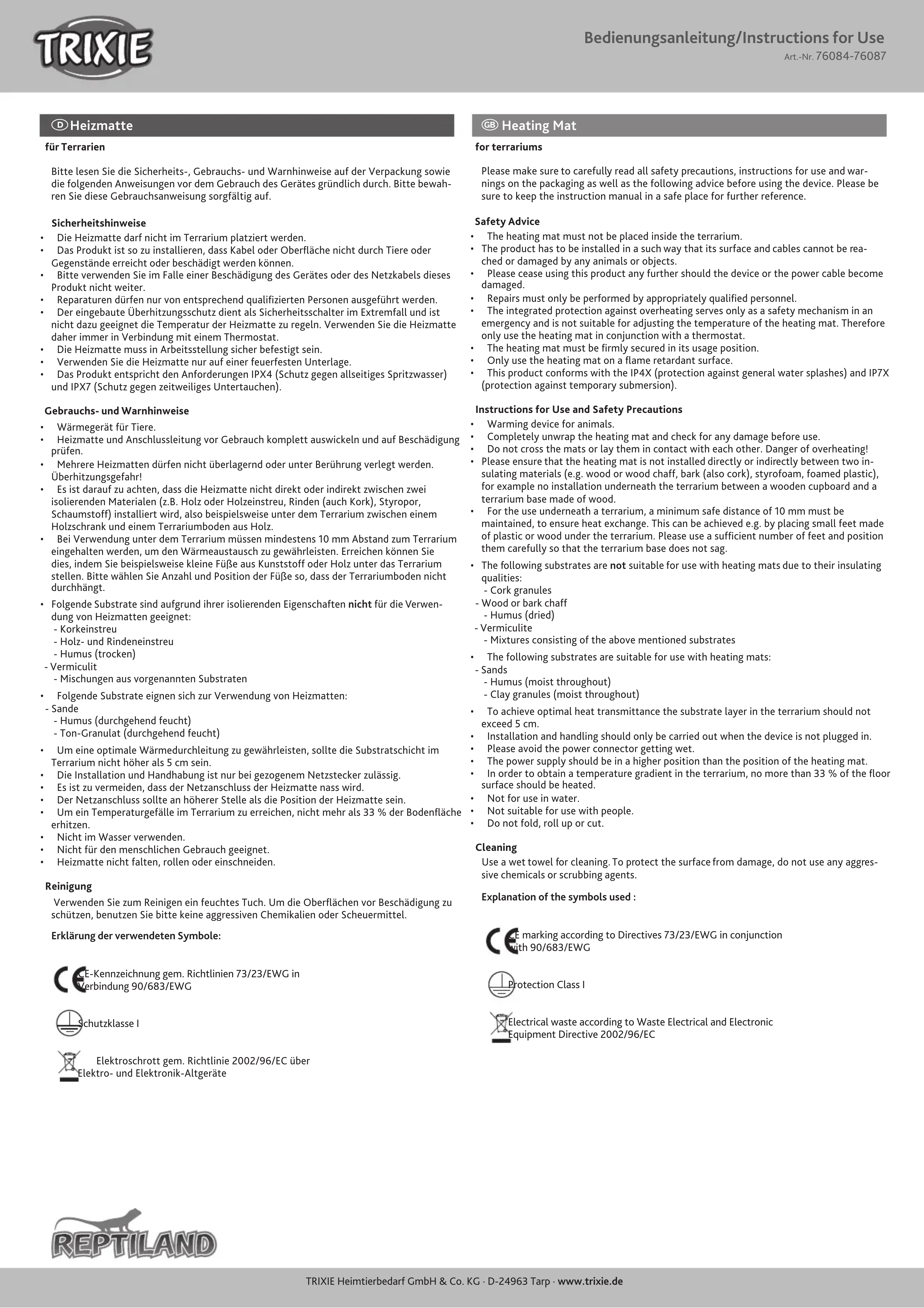 MODE D'EMPLOI 76087 Trixie