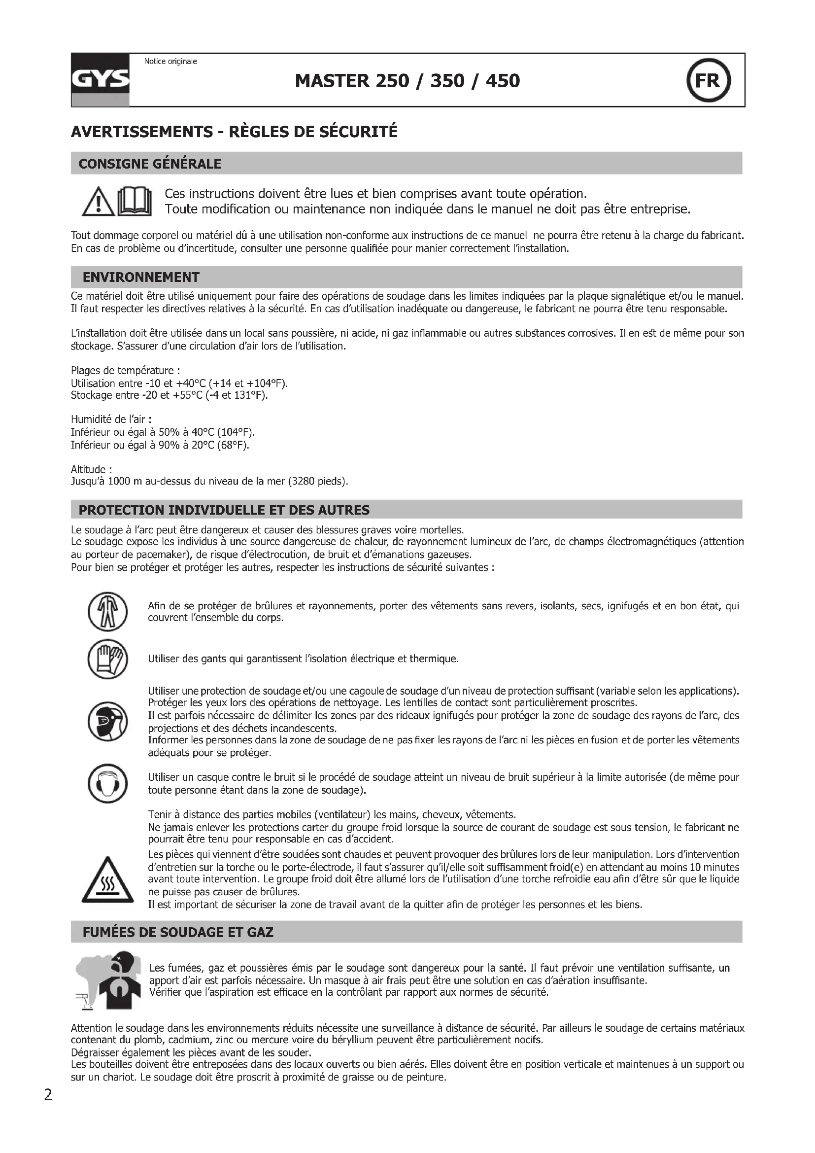 Master 450 - Poste à souder GYS - Notice d'utilisation et mode d'emploi gratuit