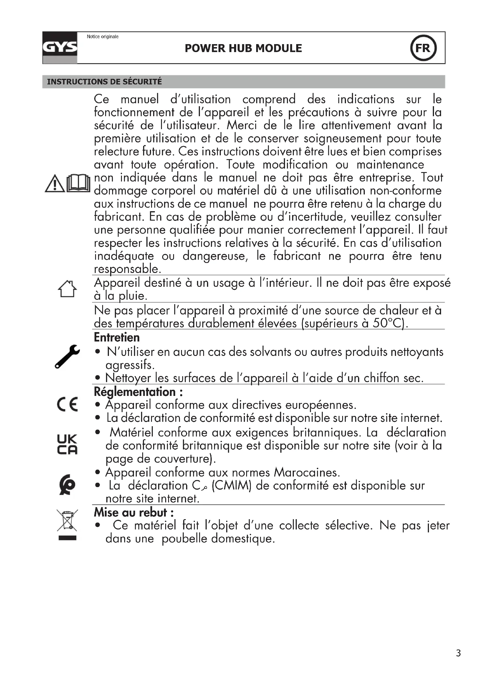 MODE D'EMPLOI Power HUB Module GYS