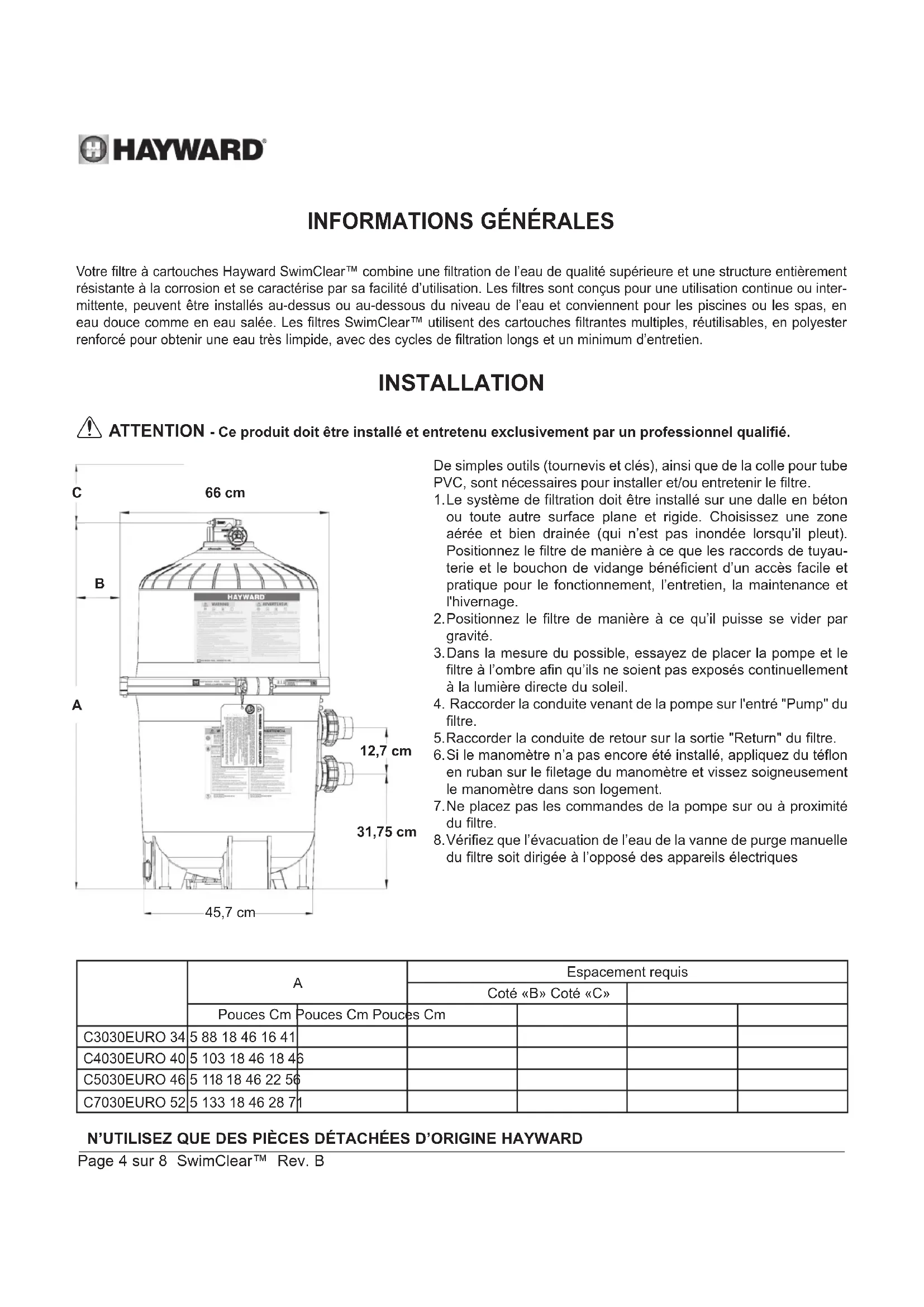 Retrouvez gratuitement la notice de l'appareil Swimclear C5030EURO HAYWARD au format PDF.