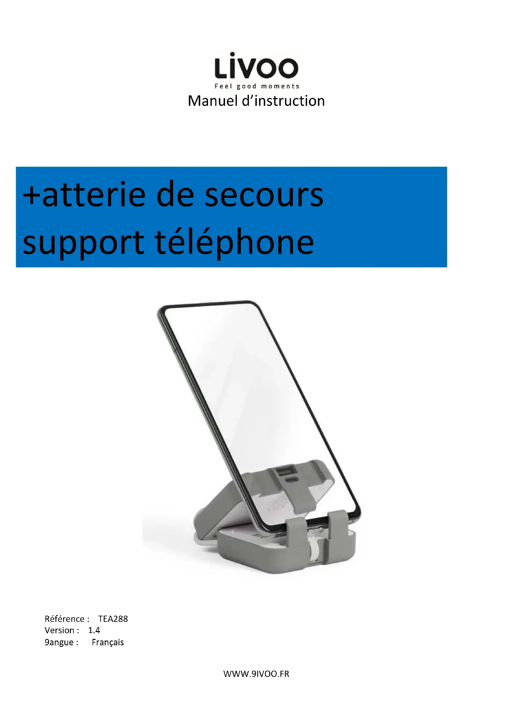 Référence : TEA288 Version : 1.4 Langue : Français Batterie de secours support téléphoneManuel d’instruction