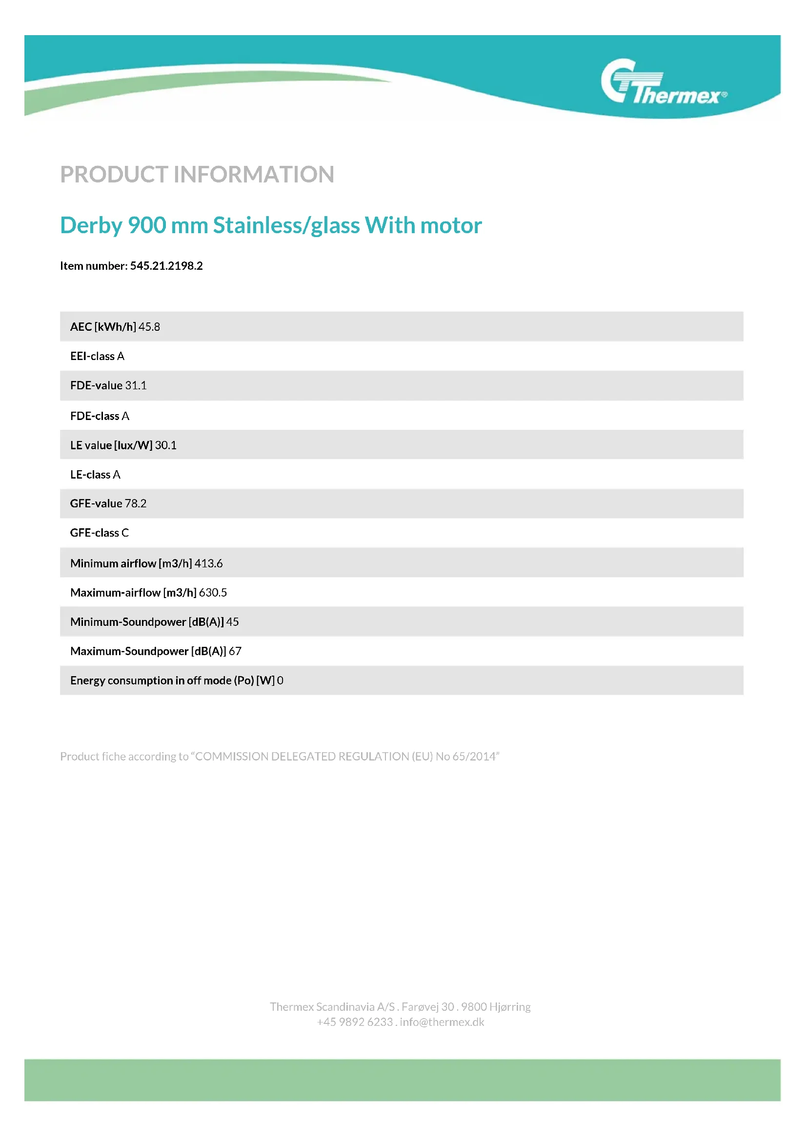 Derby FH - Hotte Thermex - Notice d'utilisation et mode d'emploi gratuit