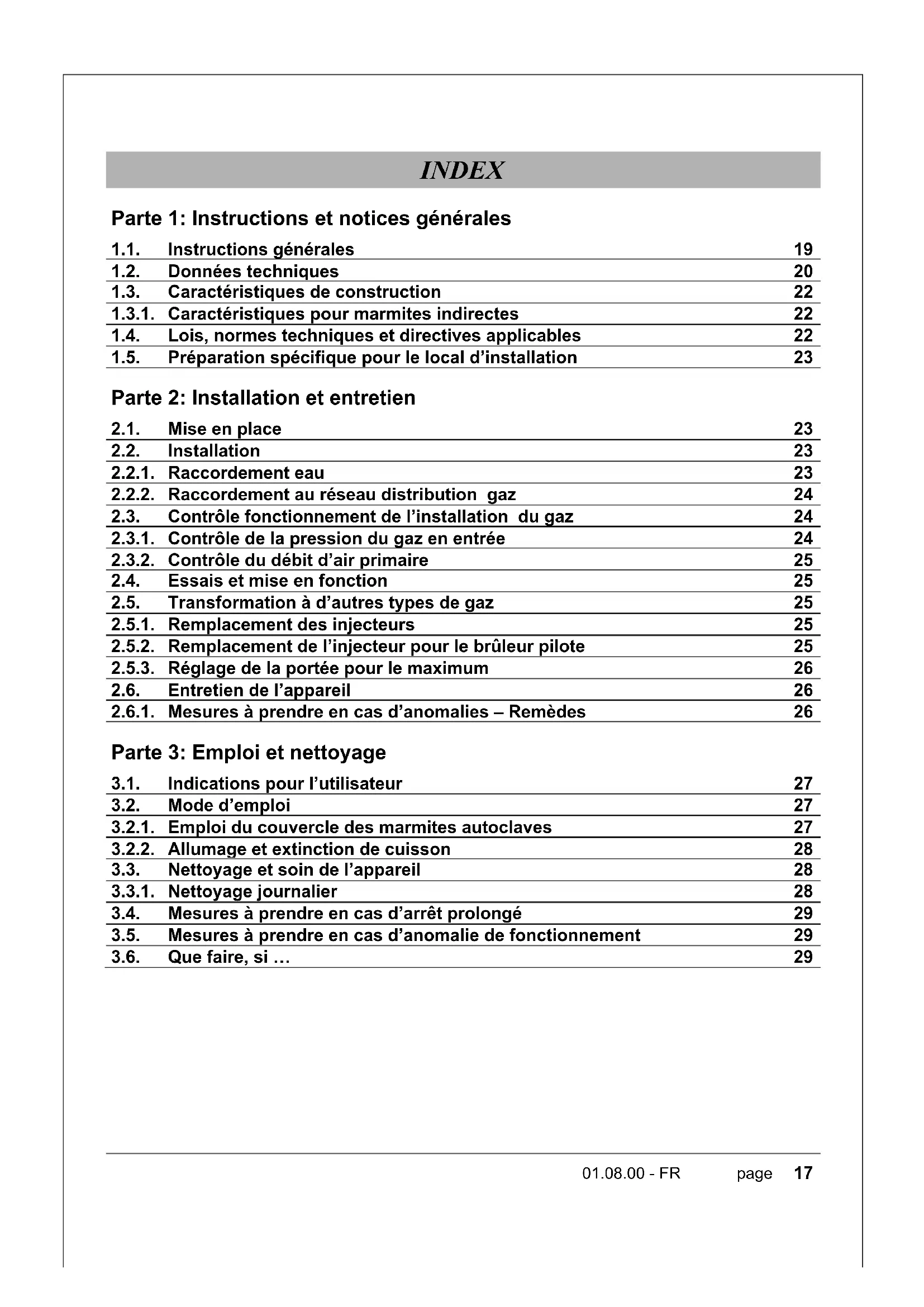 INDEX Parte 1: Instructions et notices générales
