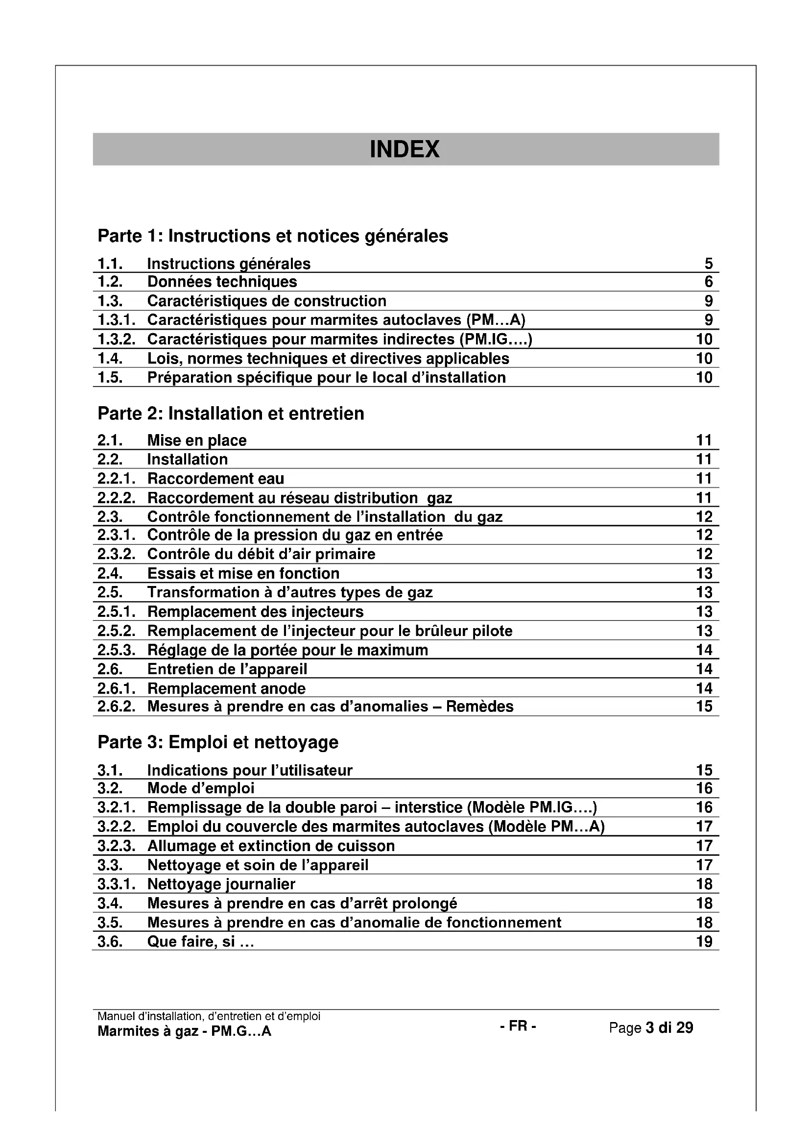 Que faire, si … 19Manuel d’installation, d’entretien et d’emploi Marmites à gaz - PM.G…A - FR - Page 4 di 29 - 4 -