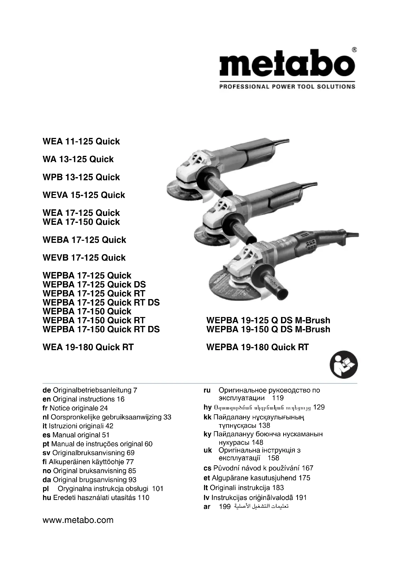 Retrouvez gratuitement la notice de l'appareil WEPBA 17150 Quick RT METABO au format PDF.
