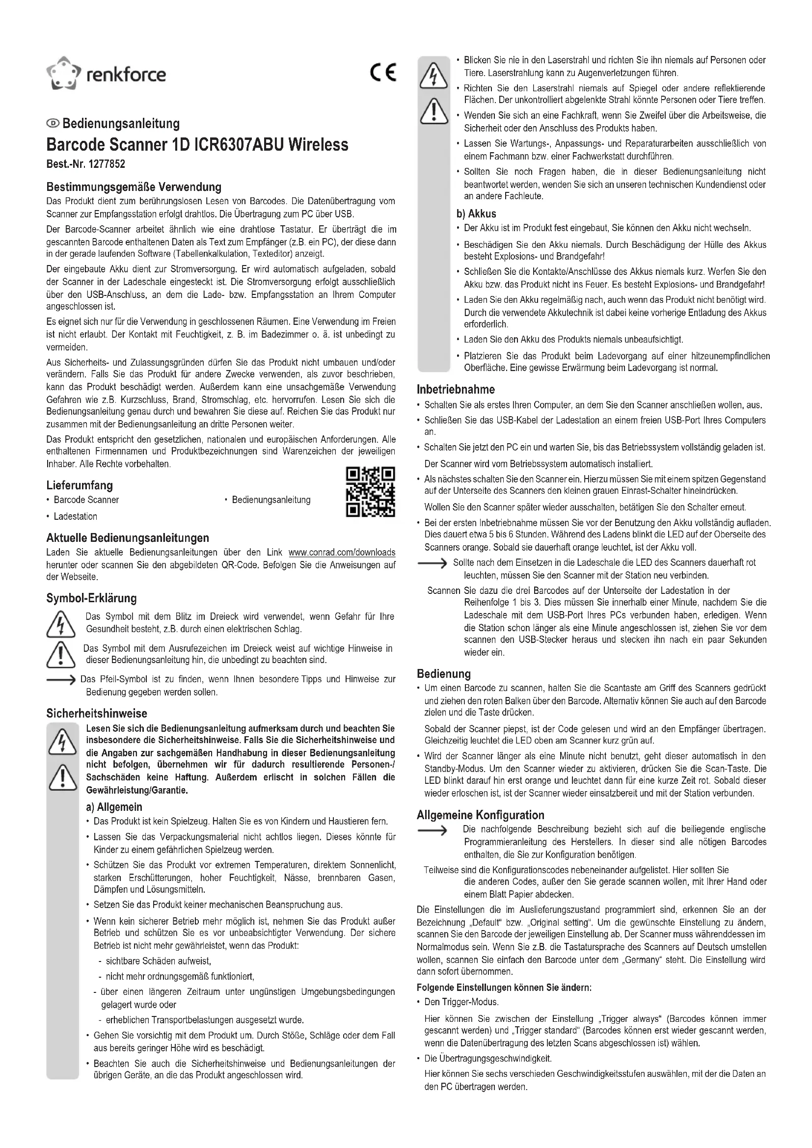 iCR6307ABQ - Lecteur de code barre Renkforce - Notice d'utilisation et mode d'emploi gratuit