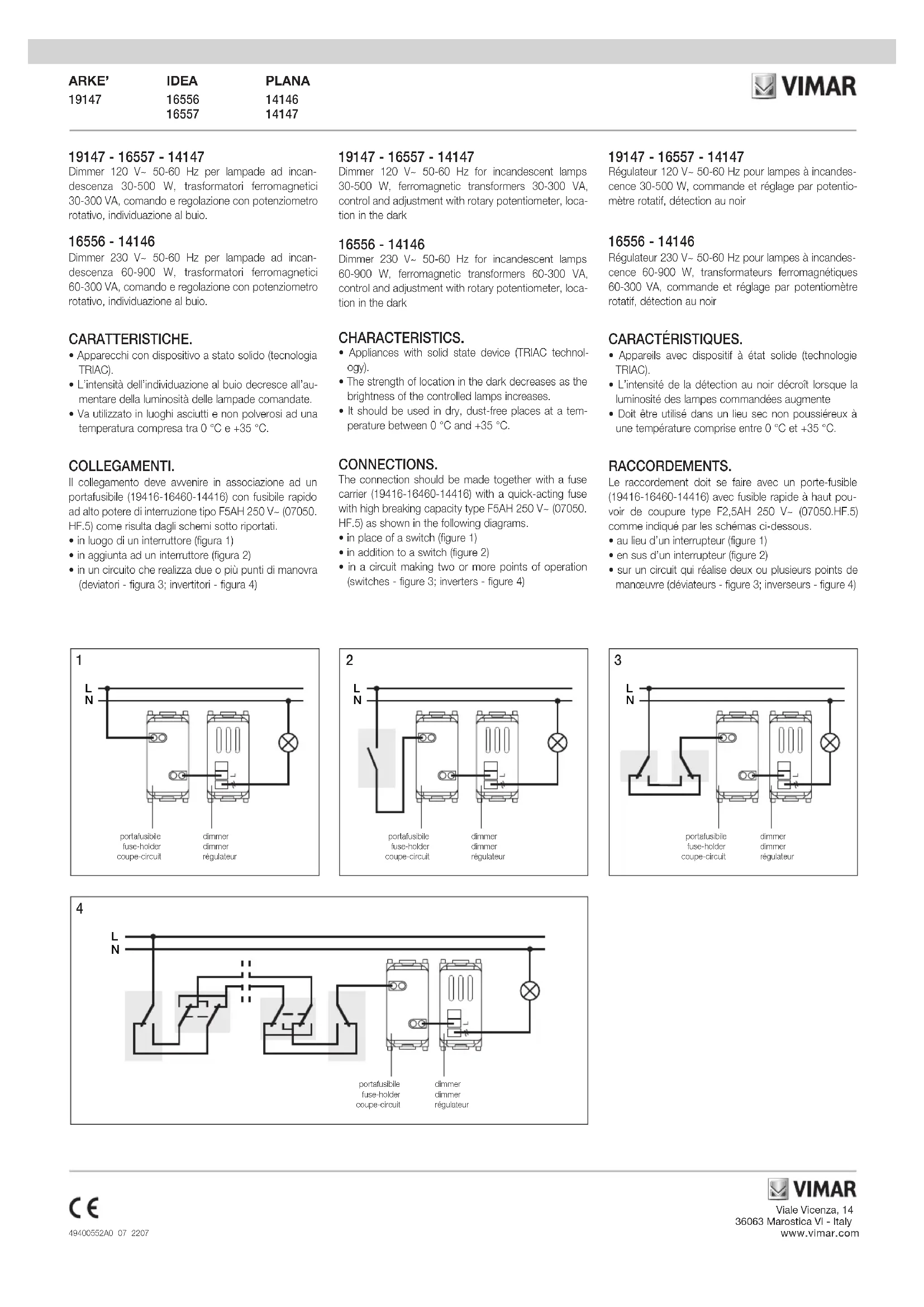 14146.SL - Gradateur Vimar - Notice d'utilisation et mode d'emploi gratuit