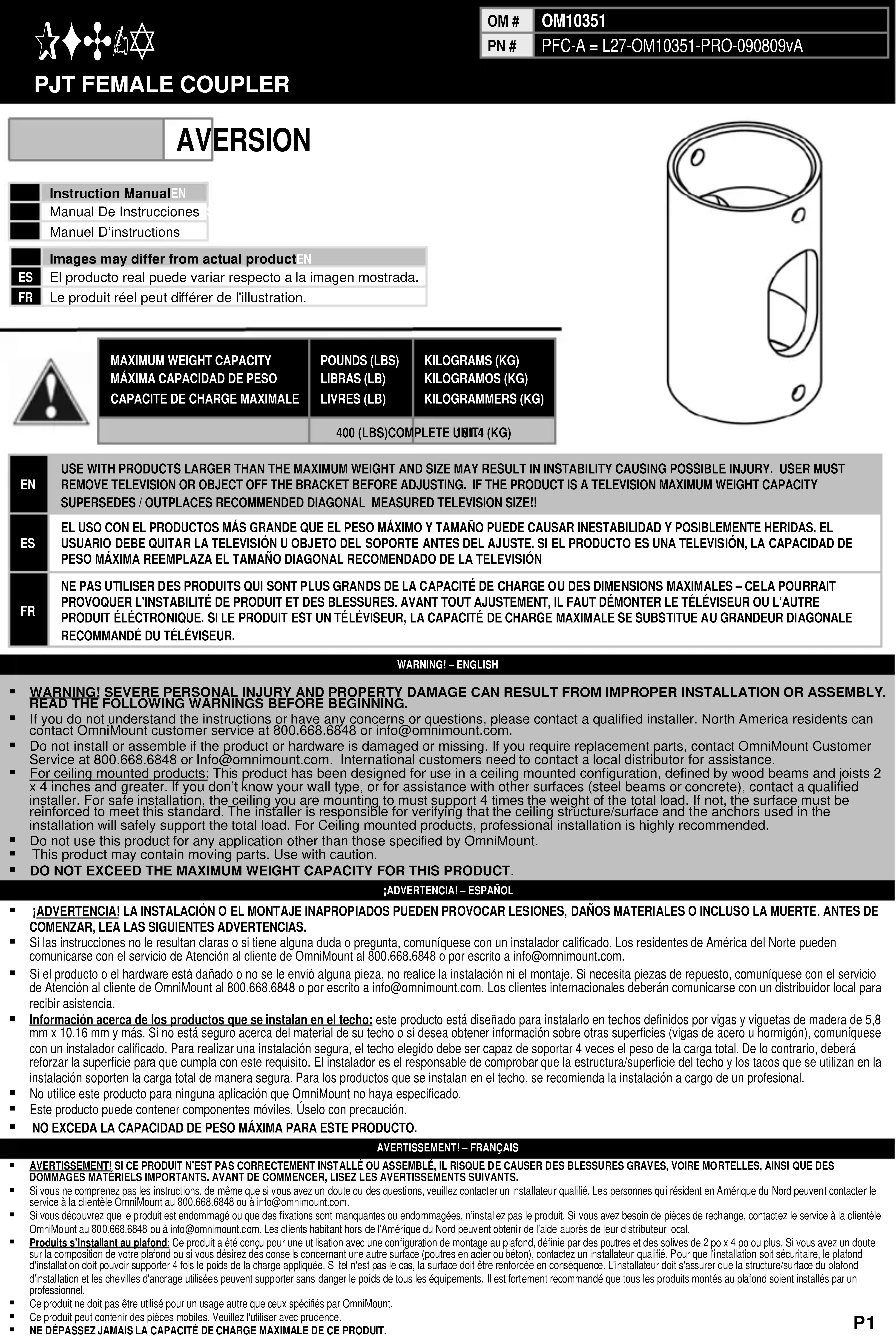 Retrouvez gratuitement la notice de l'appareil OM10351 OmniMount au format PDF.