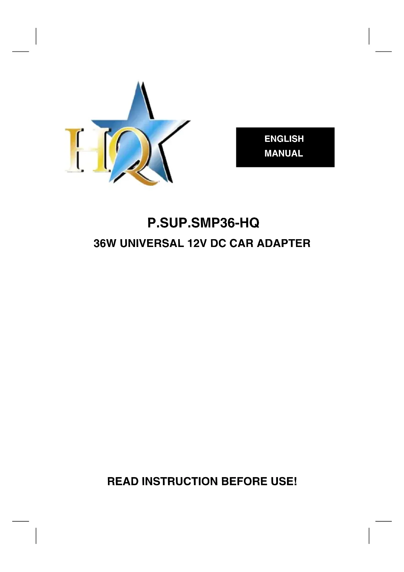 - Démarrez le moteur du véhicule avant de brancher l'adaptateur. English Deutsch Français Nederlands Italiano Español Magyar Suomi Svenska ČeskyP.SUP.SMP36-HQ